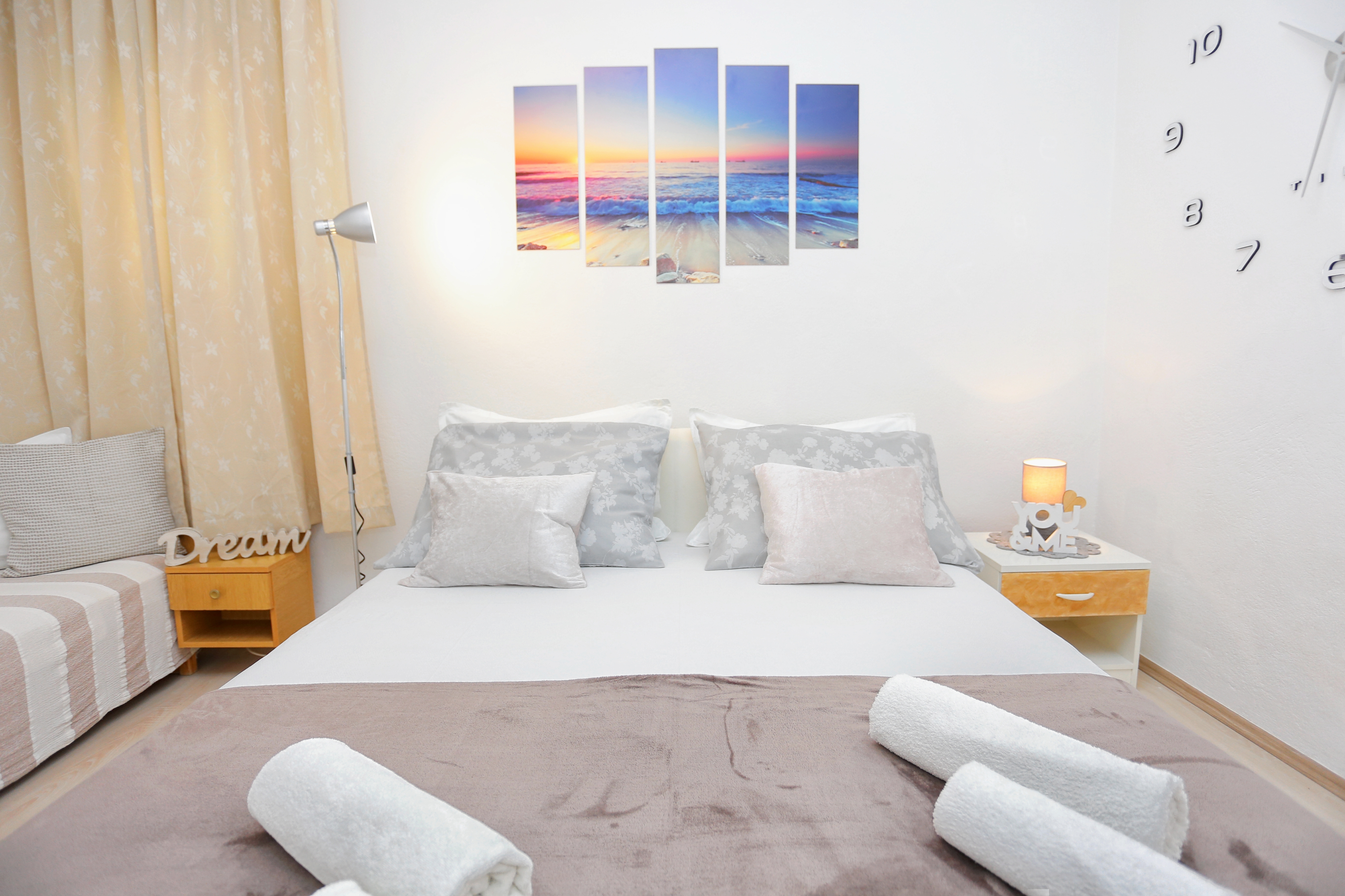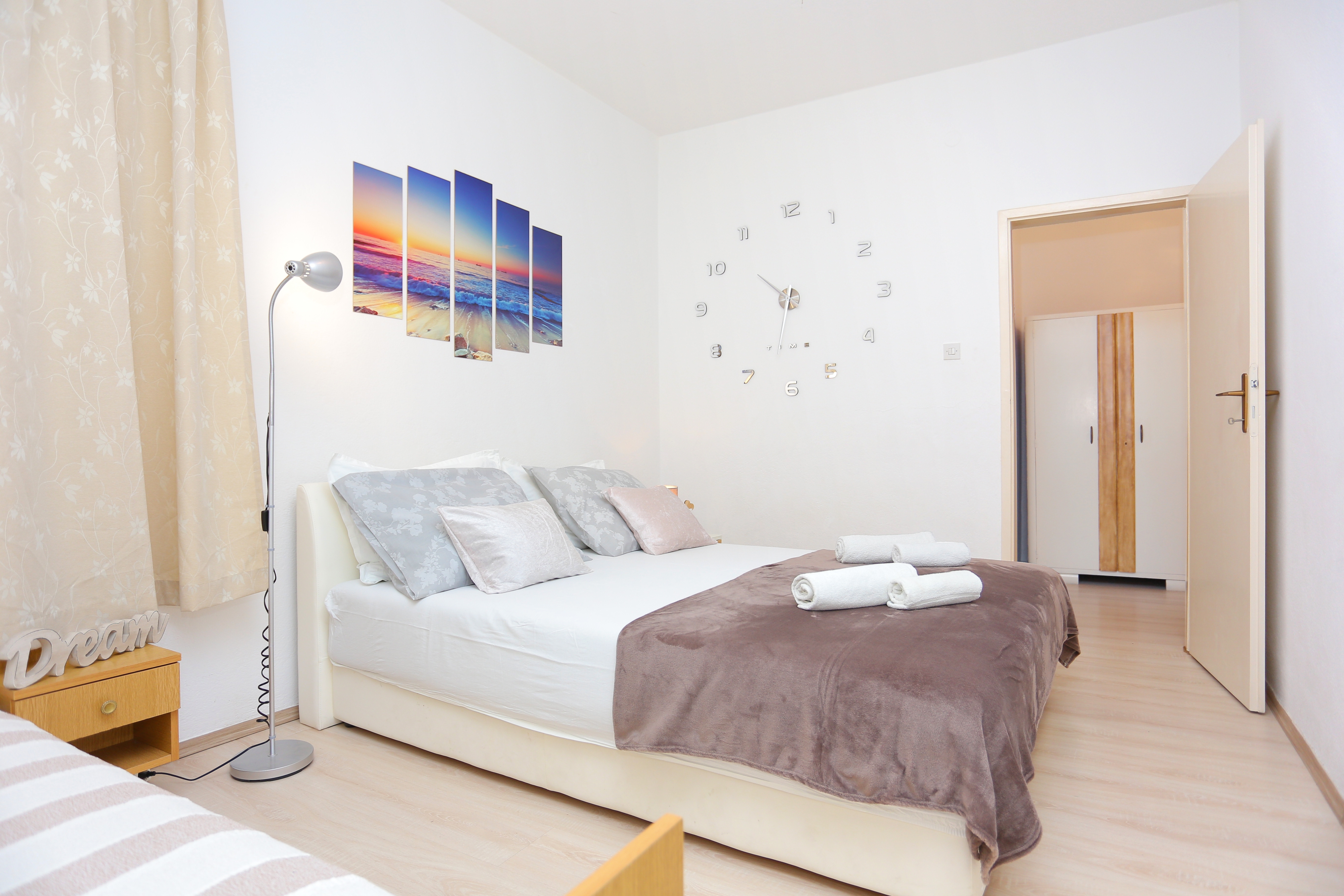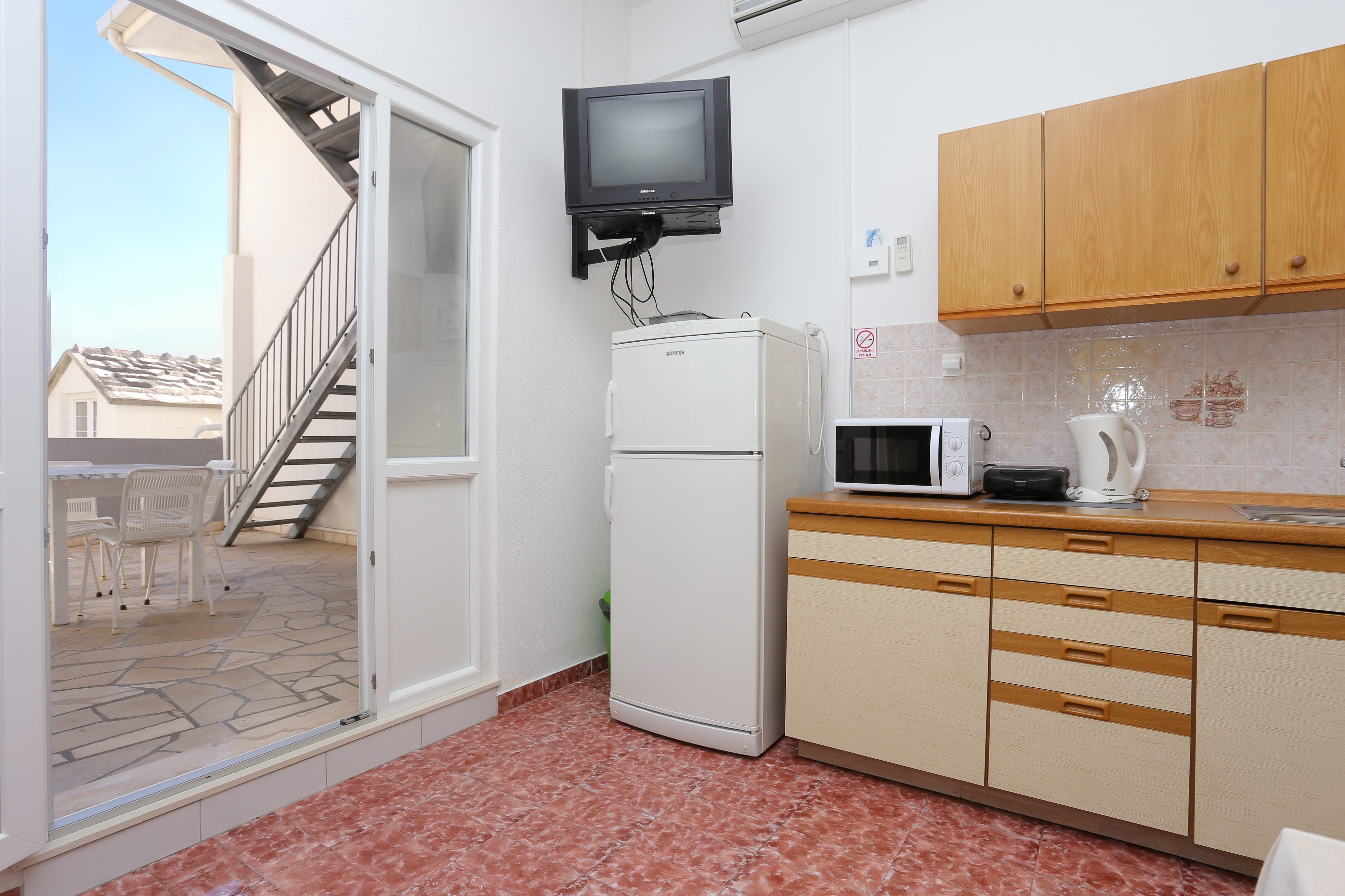 Apartment can accommodate 8 guests. Beds are situated in 3 sleeping rooms, within 60m2. Guests can use a private terrace to enjoy the warm summer evenings. The apartment offers the sea view. Food can be prepared using barbecue which is shared with other guests too. Some of the rooms of the accommodation unit are not connected with the rest of the unit. INCLUDED IN THE PRICE: tourist tax, final cleaning, air-conditioning, parking, internet, iron, hairdryer. OBLIGATORY ADDITIONAL COSTS: short stay fee (surcharge depending on a number of booked nights: 30% - 1, 20% - 2, 10% - 3). OPTIONAL ADDITIONAL COSTS: laundry (€5.00 washing). The availability of additional services for your chosen dates of stay, as well as their prices (if none are listed) must be checked ahead of time. Any additional services not shown in the price calculation are payable directly to the property owner and only if used by the visitor.