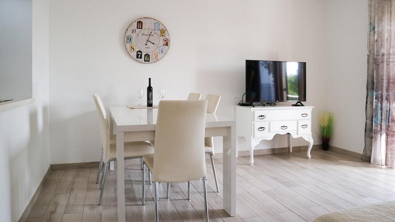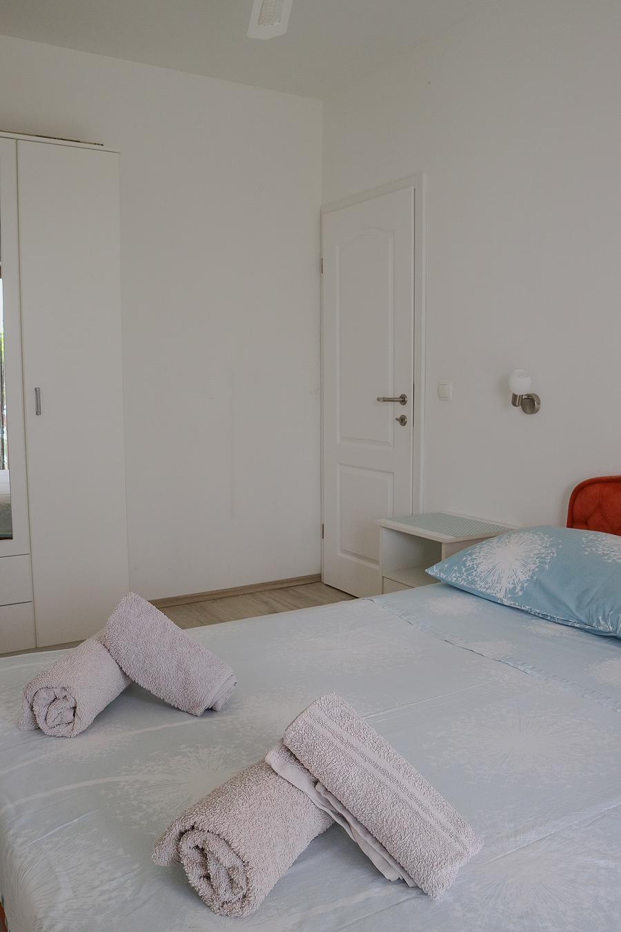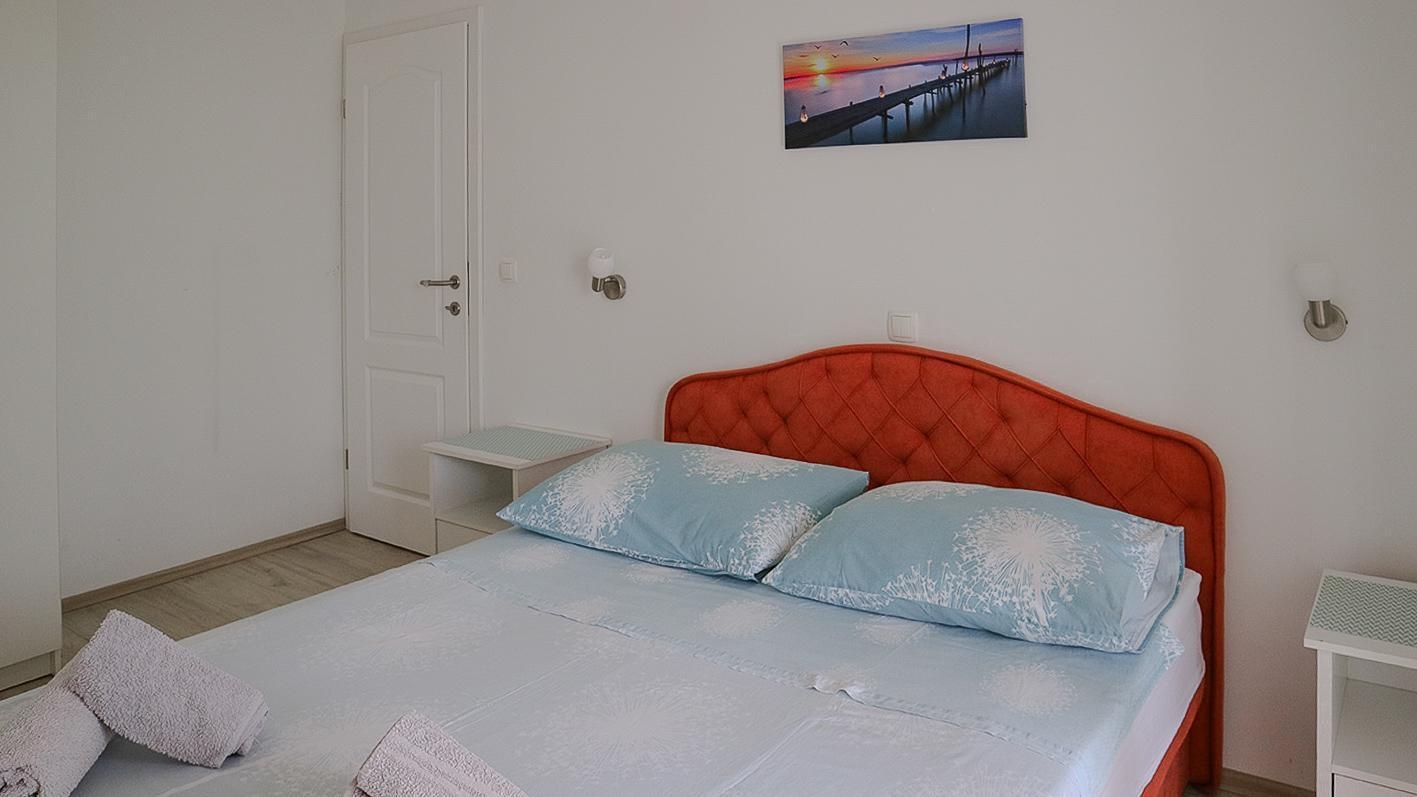 Apartment can accommodate 4 guests. Beds are situated in 2 sleeping rooms, within 53m2. Guests can use a private terrace to enjoy the warm summer evenings. The apartment offers the sea view. Food can be prepared using barbecue which is shared with other guests too. INCLUDED IN THE PRICE: tourist tax, final cleaning, air-conditioning, internet, iron, ironing board, hairdryer, portable barbecue. OBLIGATORY ADDITIONAL COSTS: short stay fee (surcharge depending on a number of booked nights: 30% - 1, 20% - 2, 10% - 3). The availability of additional services for your chosen dates of stay, as well as their prices (if none are listed) must be checked ahead of time. Any additional services not shown in the price calculation are payable directly to the property owner and only if used by the visitor.