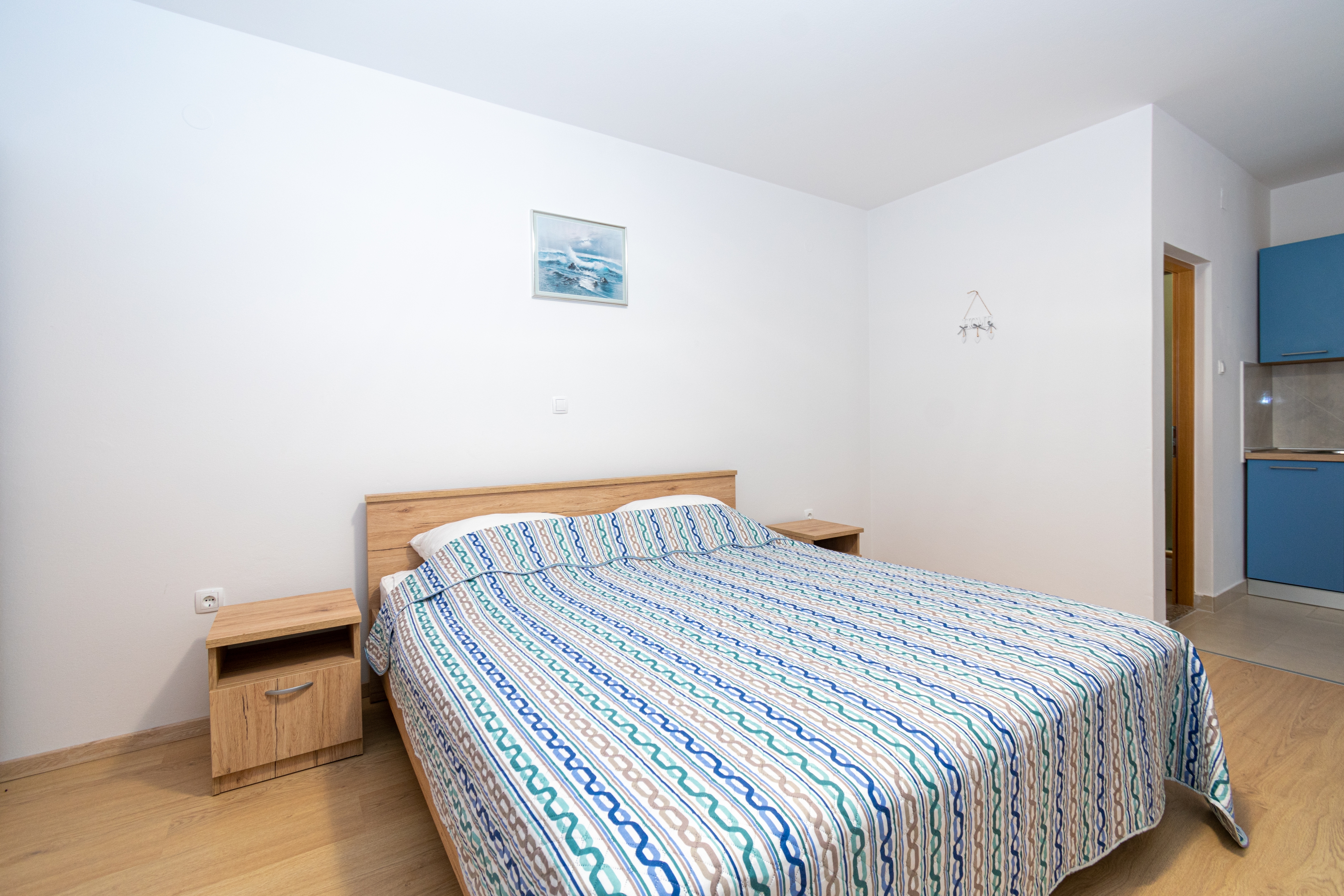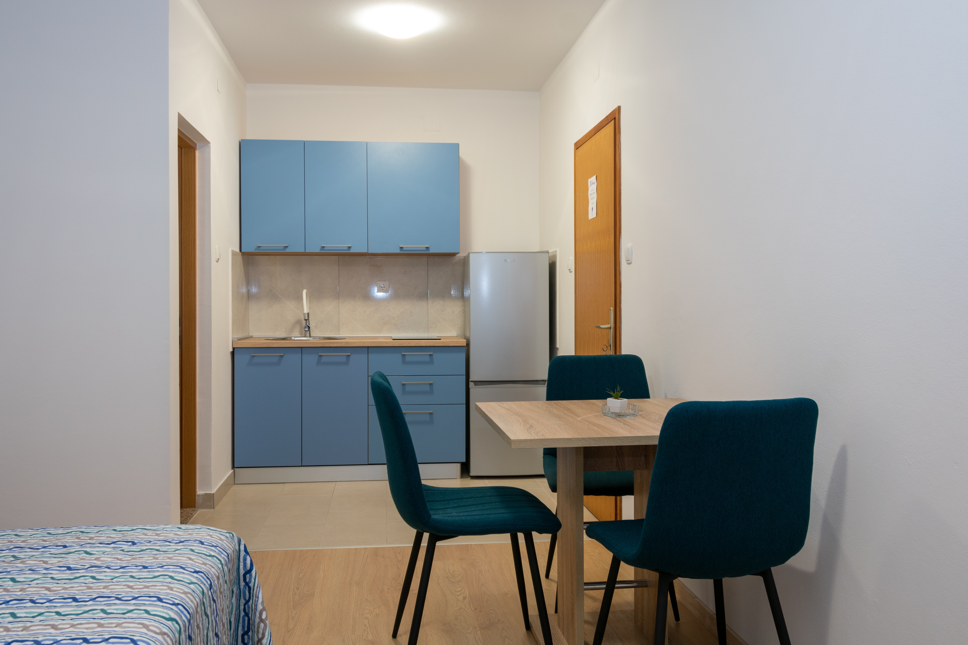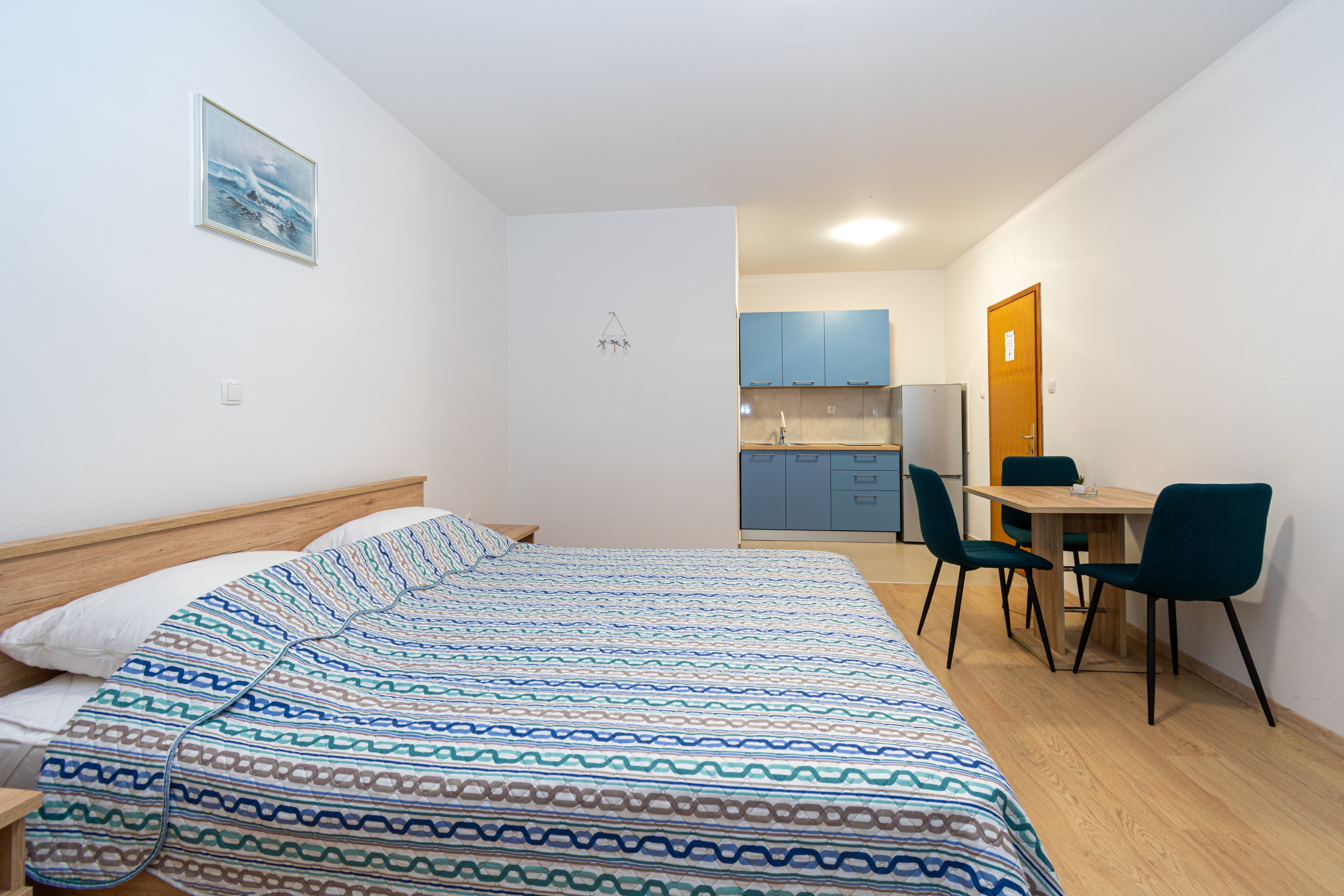 Studio flat can accommodate 2 guests. Beds are situated in 1 sleeping rooms, within 25m2. Guests can use a private balcony to enjoy the warm summer evenings. Food can be prepared using barbecue which is shared with other guests too. INCLUDED IN THE PRICE: tourist tax, final cleaning, parking, internet, laundry, baby cot, iron, ironing board, hairdryer. OBLIGATORY ADDITIONAL COSTS: short stay fee (surcharge depending on a number of booked nights: 30% - 1, 20% - 2, 10% - 3). OPTIONAL ADDITIONAL COSTS: air-conditioning (€5.00 per night), 1 bed for children (€10.00 personnight). The availability of additional services for your chosen dates of stay, as well as their prices (if none are listed) must be checked ahead of time. Any additional services not shown in the price calculation are payable directly to the property owner and only if used by the visitor. Discounts to the base price: free day 21=19 (for reservations of 21 or more days you get 2 free days for the stay until 31122026).