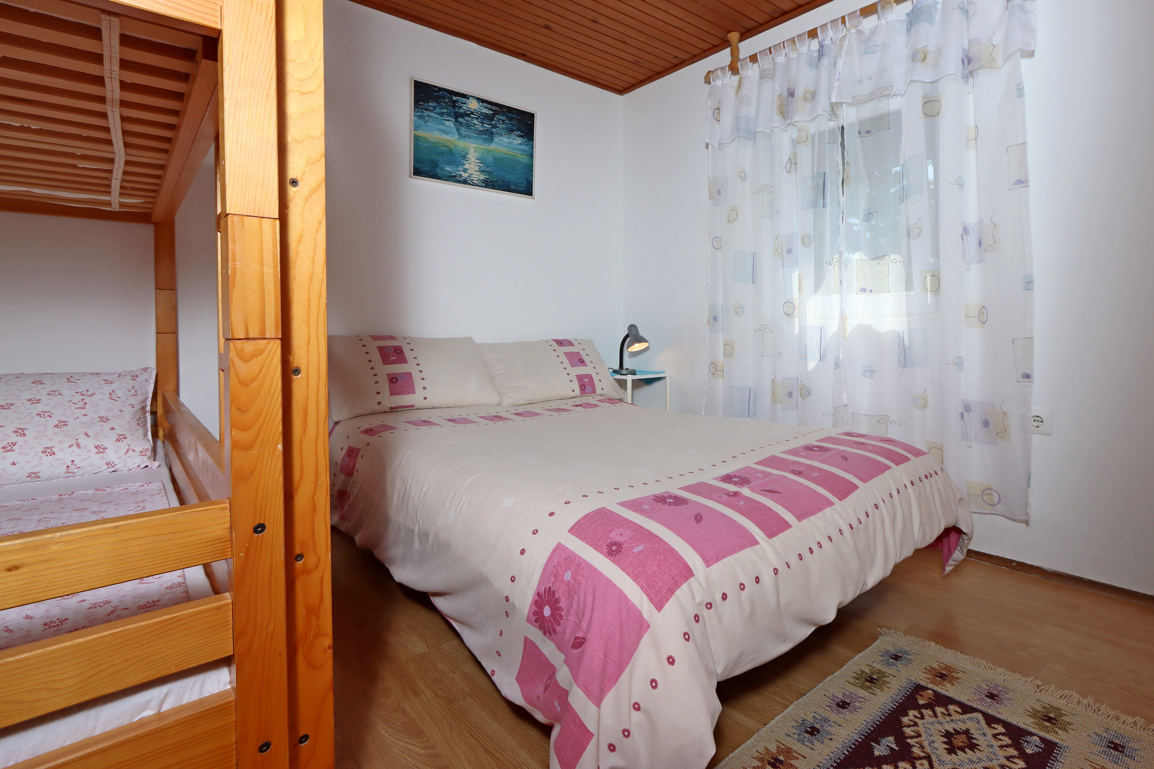 Apartment can accommodate 4 guests. Beds are situated in 2 sleeping rooms, within 36m2. Guests can use a private terrace to enjoy the warm summer evenings. Food can be prepared using barbecue which is shared with other guests too. This accommodation unit welcomes pets at an additional charge. INCLUDED IN THE PRICE: tourist tax, final cleaning, parking, internet, laundry, baby cot, iron, hairdryer, portable barbecue, sunshade, sunchairs. OBLIGATORY ADDITIONAL COSTS: short stay fee (surcharge depending on a number of booked nights: 30% - 1, 20% - 2, 10% - 3). OPTIONAL ADDITIONAL COSTS: air-conditioning (€5.00 per night), pets (€5.00 per night), 2 beds for children (€10.00 personnight). The availability of additional services for your chosen dates of stay, as well as their prices (if none are listed) must be checked ahead of time. Any additional services not shown in the price calculation are payable directly to the property owner and only if used by the visitor. Discounts to the base price: free day 14=13 (for reservations of 14 or more days you get one free day for the stay until 31122026).
