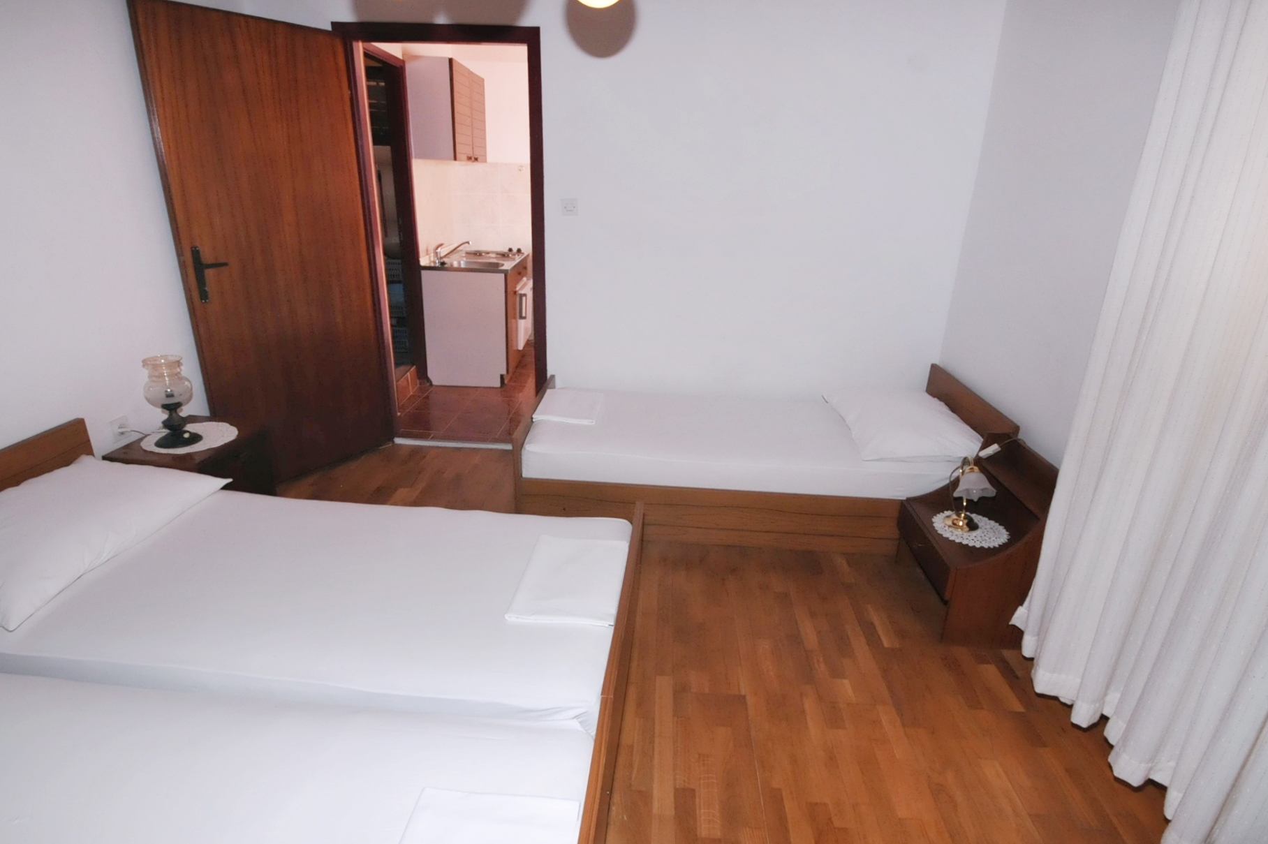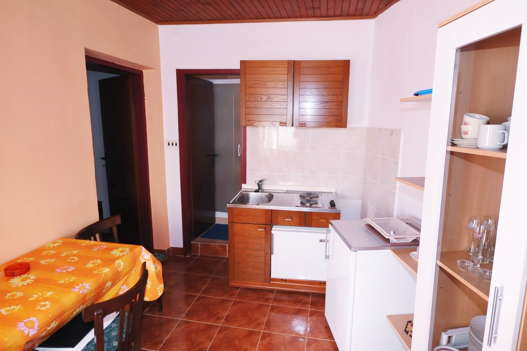 Apartment can accommodate 4 guests. Beds are situated in 1 sleeping rooms, but also in the dining room, within 28m2. Guests can use a private terrace to enjoy the warm summer evenings. The apartment offers the sea view. Food can be prepared using barbecue which is shared with other guests too. Other guests or hosts pass through the terrace of the booked accommodation unit. For the booked accommodation unit the deposit is paid directly to the owner upon check-in (deposit amount is displayed on the website) INCLUDED IN THE PRICE: tourist tax, final cleaning, parking, internet, baby cot, ironing board, hairdryer. OBLIGATORY ADDITIONAL COSTS: deposit (€100.00 one-time payment), short stay fee (surcharge depending on a number of booked nights: 30% - 1, 20% - 2, 10% - 3). OPTIONAL ADDITIONAL COSTS: air-conditioning (€2.00 per night), boat mooring (€5.00 per night). The availability of additional services for your chosen dates of stay, as well as their prices (if none are listed) must be checked ahead of time. Any additional services not shown in the price calculation are payable directly to the property owner and only if used by the visitor.
