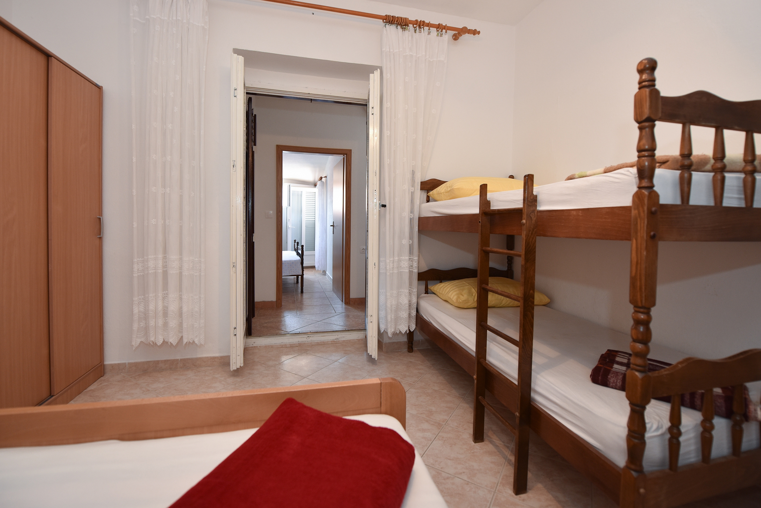 Apartment can accommodate 6 guests. Beds are situated in 2 sleeping rooms, within 38m2. The apartment offers the sea view. Food can be prepared using barbecue which is shared with other guests too. Reserved accommodation unit has a shared terrace. INCLUDED IN THE PRICE: tourist tax, final cleaning, parking, internet, boat mooring. OBLIGATORY ADDITIONAL COSTS: short stay fee (surcharge depending on a number of booked nights: 30% - 1, 20% - 2, 10% - 3). OPTIONAL ADDITIONAL COSTS: air-conditioning (€5.00 per night). The availability of additional services for your chosen dates of stay, as well as their prices (if none are listed) must be checked ahead of time. Any additional services not shown in the price calculation are payable directly to the property owner and only if used by the visitor. Discounts to the base price: free day 14=13 (for reservations of 14 or more days you get one free day for the stay until 31122026).