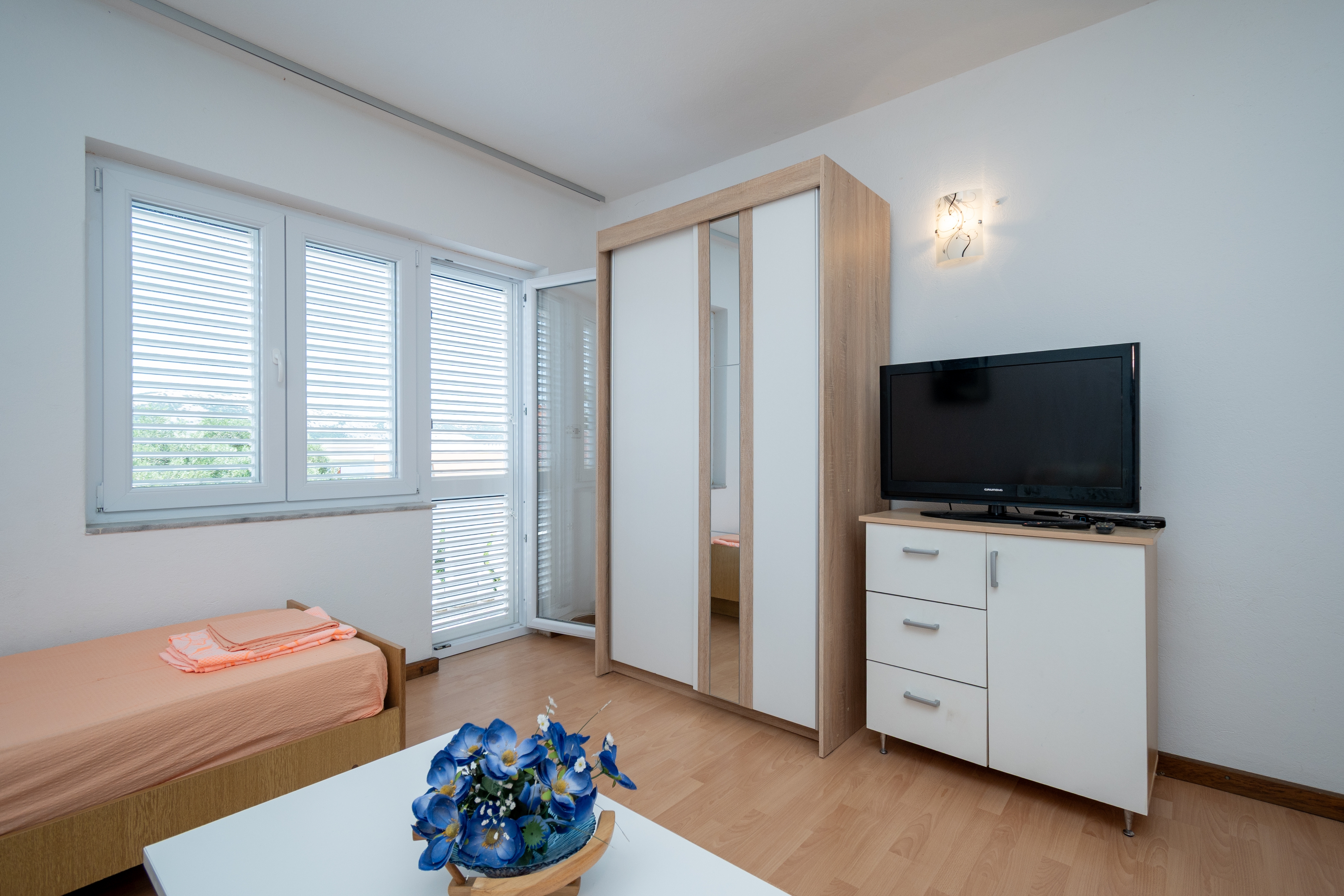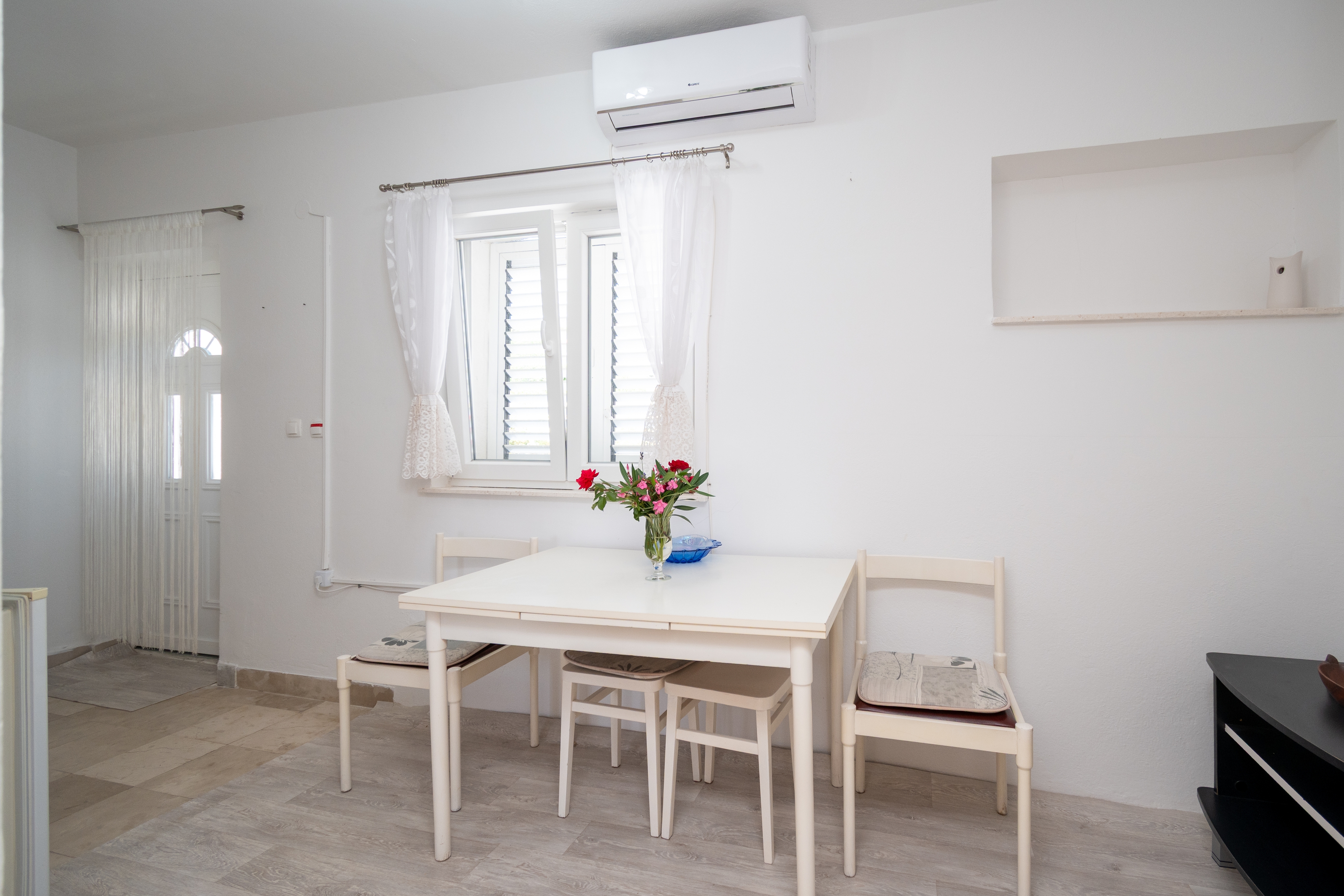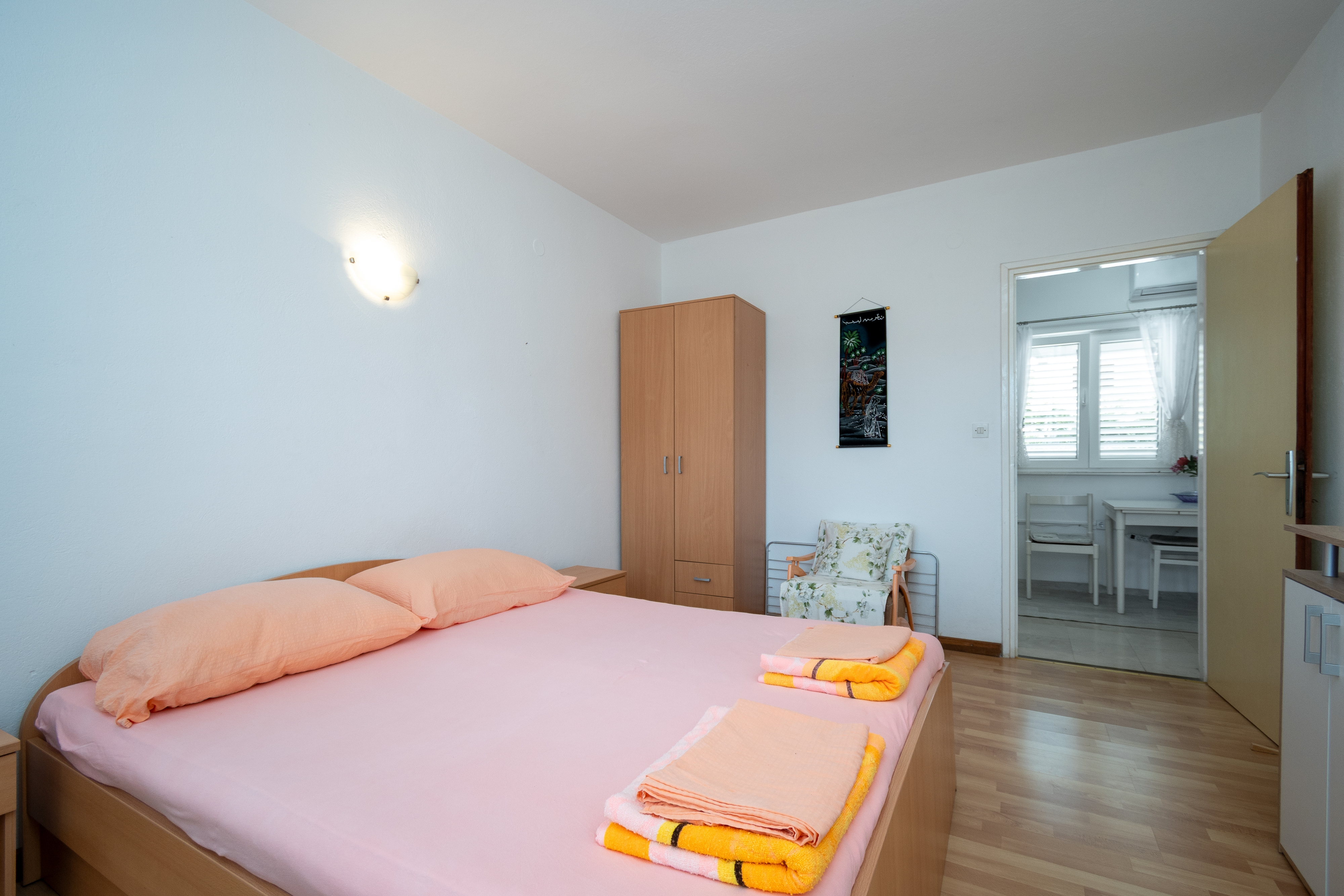 Studio flat can accommodate 4 guests. Beds are situated in 2 sleeping rooms, within 42m2. Guests can use a private terrace to enjoy the warm summer evenings. Food can be prepared using barbecue which is shared with other guests too. INCLUDED IN THE PRICE: tourist tax, final cleaning, air-conditioning, parking, internet, boat mooring, iron, hairdryer, sunshade, sunchairs. OBLIGATORY ADDITIONAL COSTS: short stay fee (surcharge depending on a number of booked nights: 30% - 1, 20% - 2, 10% - 3). The availability of additional services for your chosen dates of stay, as well as their prices (if none are listed) must be checked ahead of time. Any additional services not shown in the price calculation are payable directly to the property owner and only if used by the visitor.