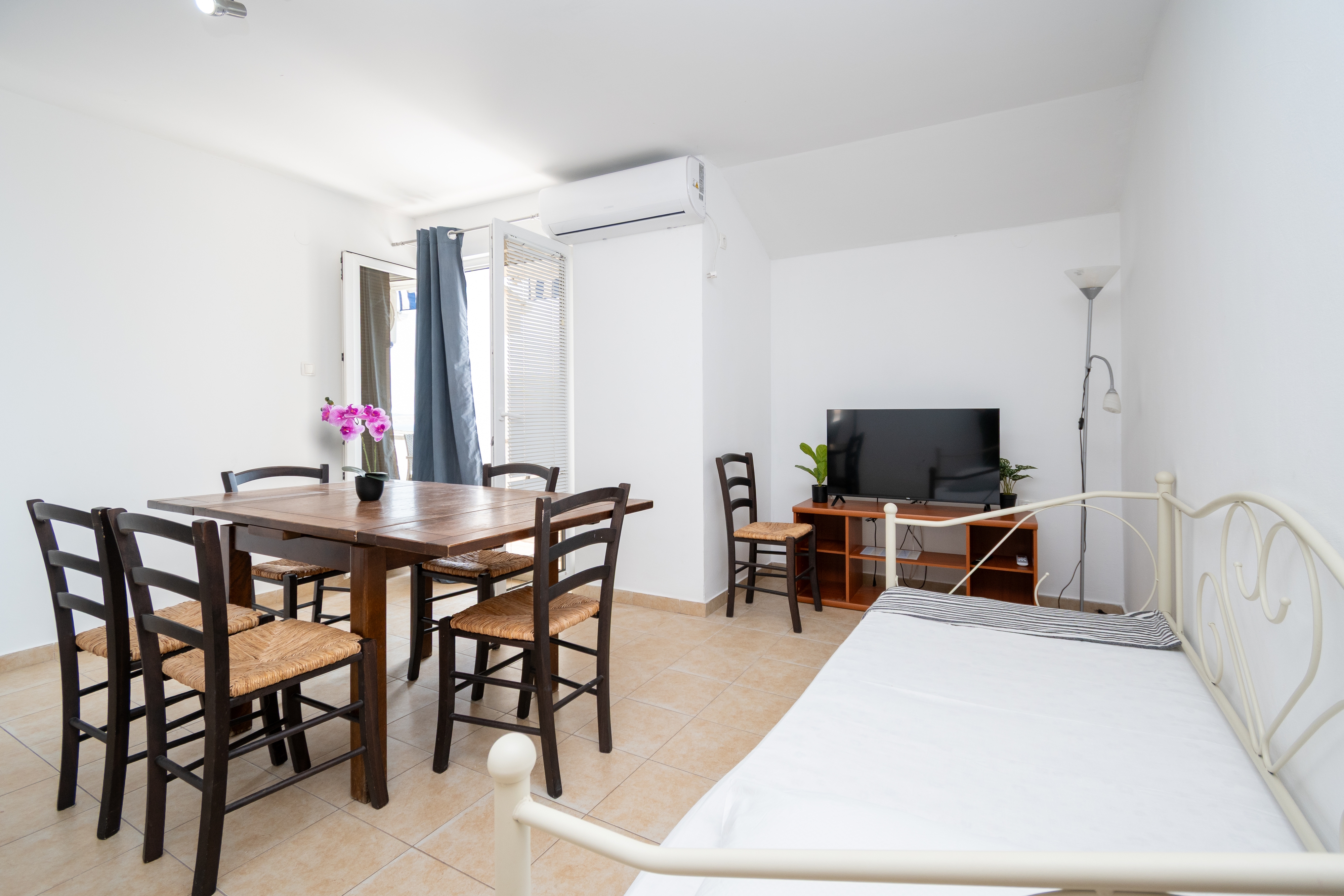 Apartment can accommodate 5 guests. Beds are situated in 2 sleeping rooms, but also in the dining room, within 52m2. Guests can use a private terrace to enjoy the warm summer evenings. The apartment offers the sea view. Food can be prepared using barbecue which is shared with other guests too. Shared pool is on disposal during stay. This accommodation unit welcomes pets at no additional costs. For the booked accommodation unit the deposit is paid directly to the owner upon check-in (deposit amount is displayed on the website) INCLUDED IN THE PRICE: tourist tax, final cleaning, air-conditioning, pool, parking, internet, laundry, pets, bicycle, baby cot, iron, ironing board, hairdryer. OBLIGATORY ADDITIONAL COSTS: deposit (€200.00 one-time payment), short stay fee (surcharge depending on a number of booked nights: 30% - 1, 20% - 2, 10% - 3). The availability of additional services for your chosen dates of stay, as well as their prices (if none are listed) must be checked ahead of time. Any additional services not shown in the price calculation are payable directly to the property owner and only if used by the visitor. Discounts to the base price: free day 21=19 (for reservations of 21 or more days you get 2 free days for the stay until 31122026).