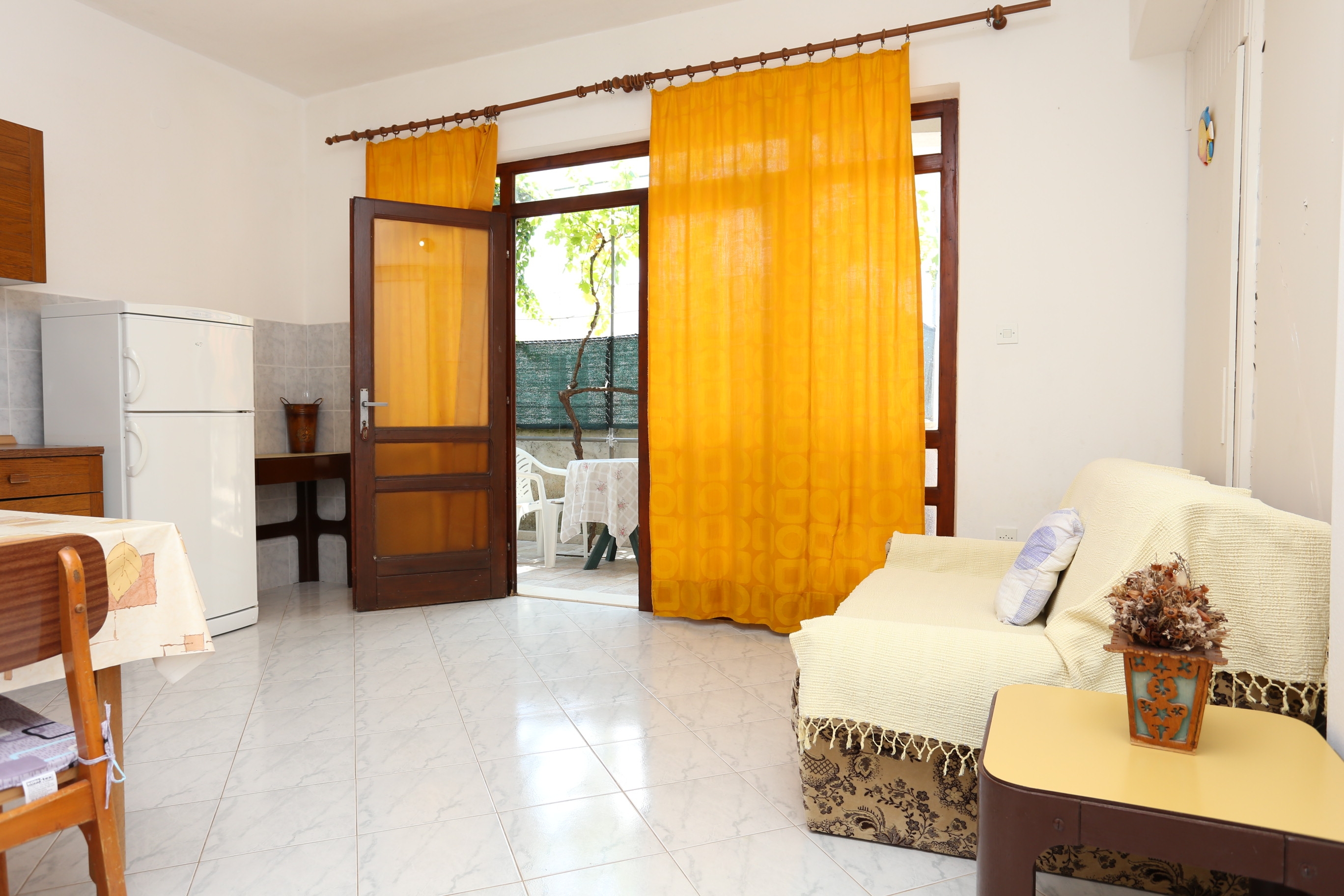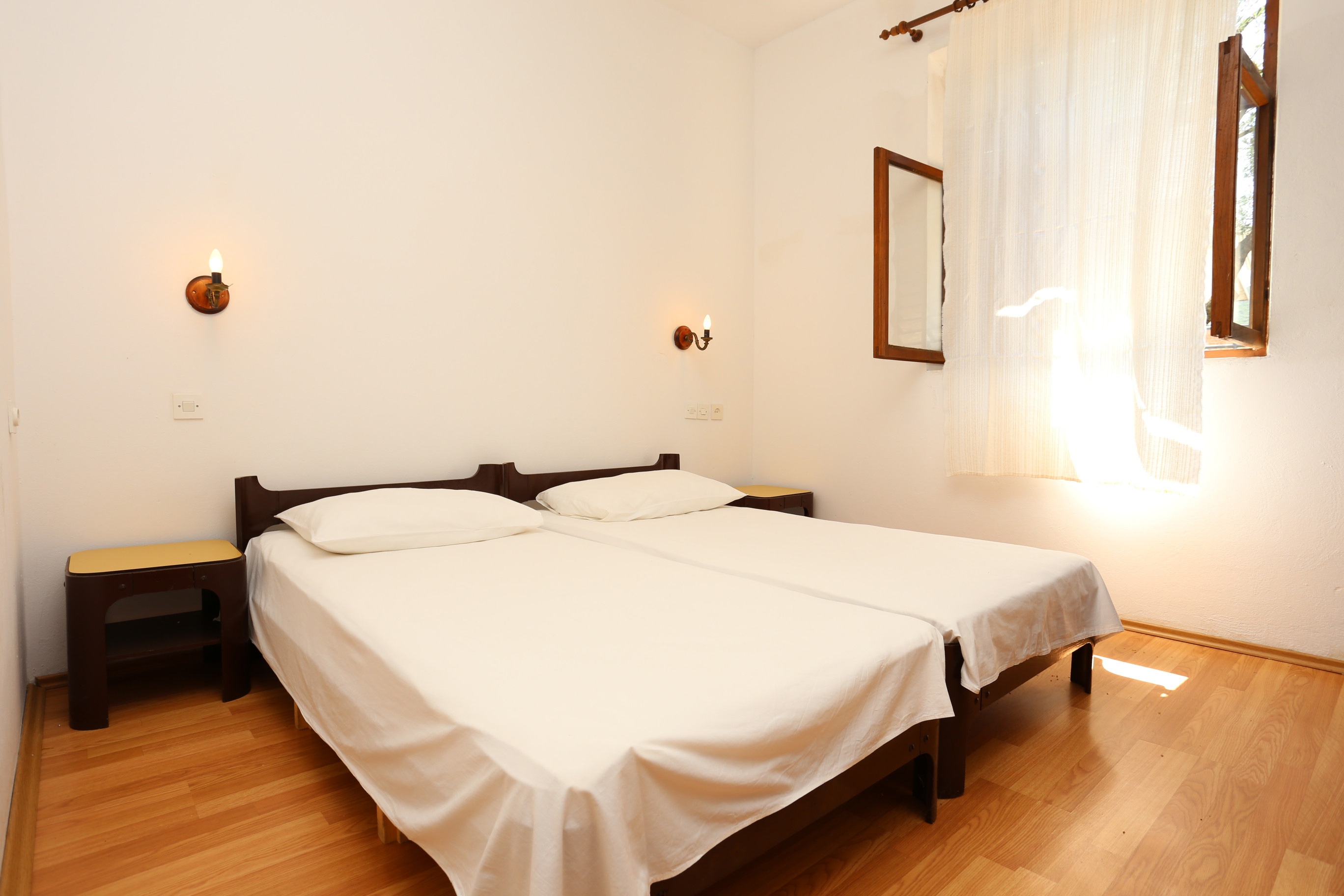 Apartment can accommodate 6 guests. Beds are situated in 2 sleeping rooms, but also in the dining room, within 50m2. Guests can use a private terrace to enjoy the warm summer evenings. The apartment offers the sea view. Food can be prepared using barbecue which is shared with other guests too. Some of the rooms of the accommodation unit are not connected with the rest of the unit. INCLUDED IN THE PRICE: tourist tax, final cleaning, air-conditioning, parking, internet, boat mooring, iron, ironing board, sunchairs. OBLIGATORY ADDITIONAL COSTS: short stay fee (surcharge depending on a number of booked nights: 30% - 1, 20% - 2, 10% - 3). OPTIONAL ADDITIONAL COSTS: additional bed (€8.00 per night). The availability of additional services for your chosen dates of stay, as well as their prices (if none are listed) must be checked ahead of time. Any additional services not shown in the price calculation are payable directly to the property owner and only if used by the visitor. Discounts to the base price: free day 14=13 (for reservations of 14 or more days you get one free day for the stay until 31122026).