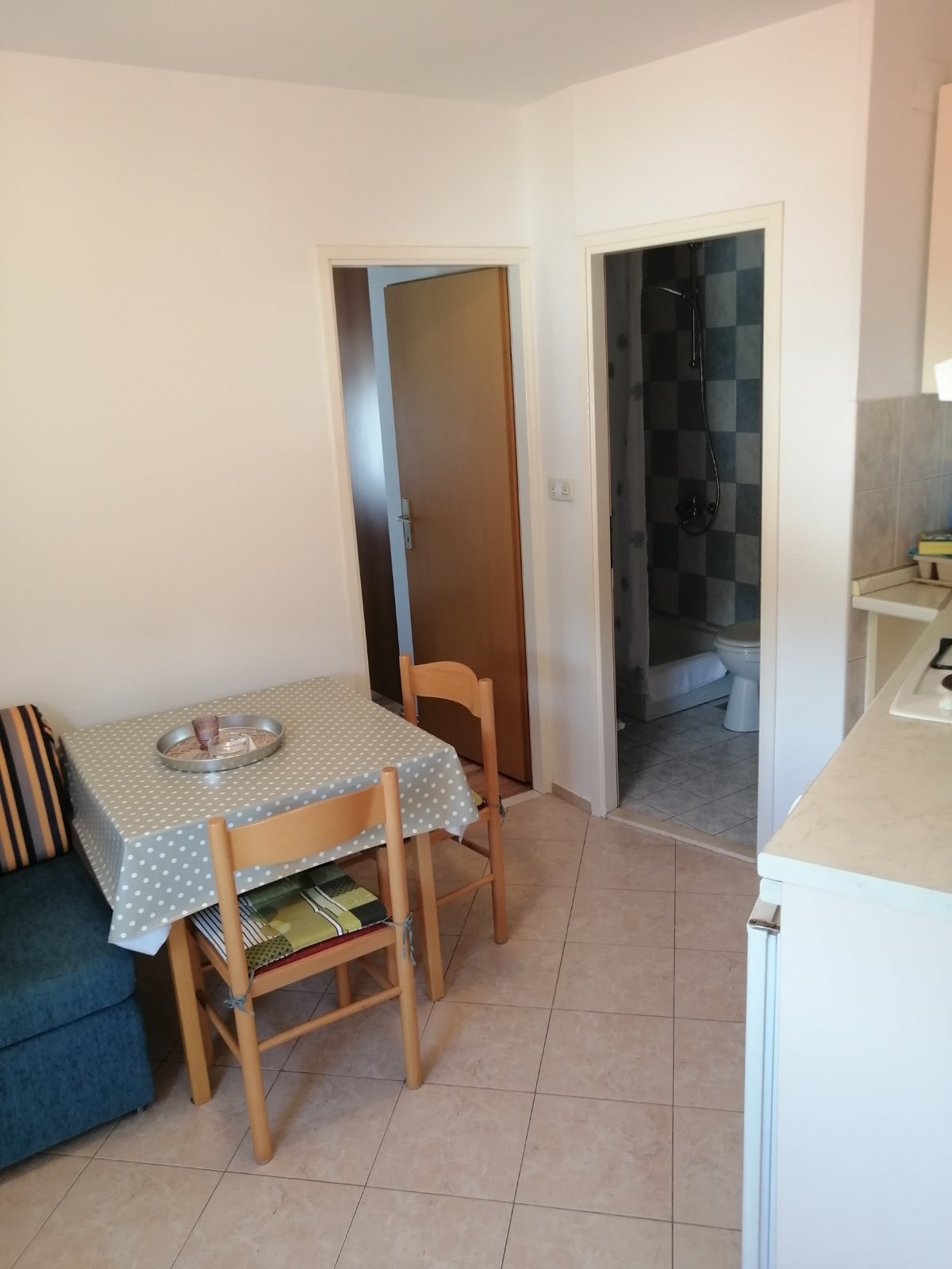Apartment can accommodate 3 guests. Beds are situated in 1 sleeping rooms, but also in the dining room, within 24m2. Guests can use a private terrace to enjoy the warm summer evenings. The apartment offers the sea view. Other guests or hosts pass through the terrace of the booked accommodation unit. Some of the rooms of the accommodation unit are not connected with the rest of the unit. INCLUDED IN THE PRICE: tourist tax, final cleaning, air-conditioning, parking, internet, baby cot, iron, ironing board, hairdryer. OBLIGATORY ADDITIONAL COSTS: short stay fee (surcharge depending on a number of booked nights: 30% - 1, 20% - 2, 10% - 3). The availability of additional services for your chosen dates of stay, as well as their prices (if none are listed) must be checked ahead of time. Any additional services not shown in the price calculation are payable directly to the property owner and only if used by the visitor.
