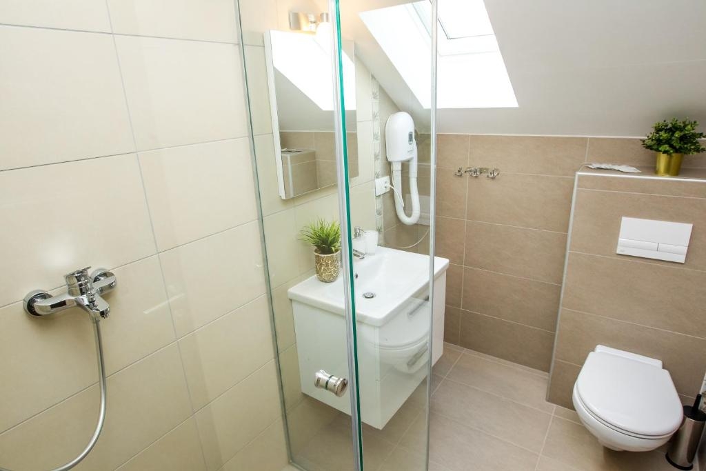 Room can accommodate 2 guests. Beds are situated in 1 sleeping rooms, within 20m2. Guests can use a private balcony to enjoy the warm summer evenings. Reserved accommodation unit is a room with its own bathroom and there is no usage of kitchen. INCLUDED IN THE PRICE: tourist tax, final cleaning, air-conditioning, central heating, parking, internet, hairdryer. OPTIONAL ADDITIONAL COSTS: breakfast (€10.00, a 50% discount for children aged 4 to 12 years, Children up to age 4 free of charge). The availability of additional services for your chosen dates of stay, as well as their prices (if none are listed) must be checked ahead of time. Any additional services not shown in the price calculation are payable directly to the property owner and only if used by the visitor.