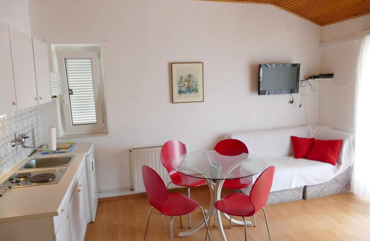 Apartment can accommodate 3 guests. Beds are situated in 1 sleeping rooms, but also in the living room, within 35m2. Guests can use a private terrace to enjoy the warm summer evenings. The apartment offers the sea view. This accommodation unit welcomes pets at an additional charge. INCLUDED IN THE PRICE: tourist tax, final cleaning, air-conditioning, parking, internet. OPTIONAL ADDITIONAL COSTS: pets (€6.00 per night). The availability of additional services for your chosen dates of stay, as well as their prices (if none are listed) must be checked ahead of time. Any additional services not shown in the price calculation are payable directly to the property owner and only if used by the visitor.