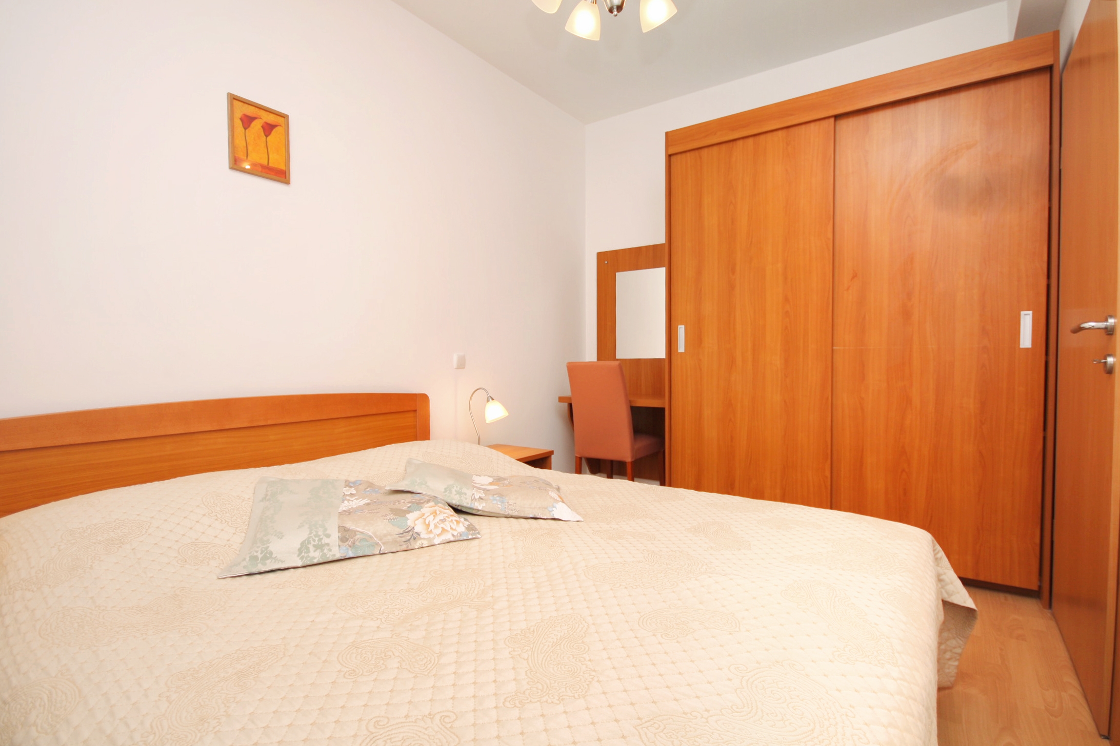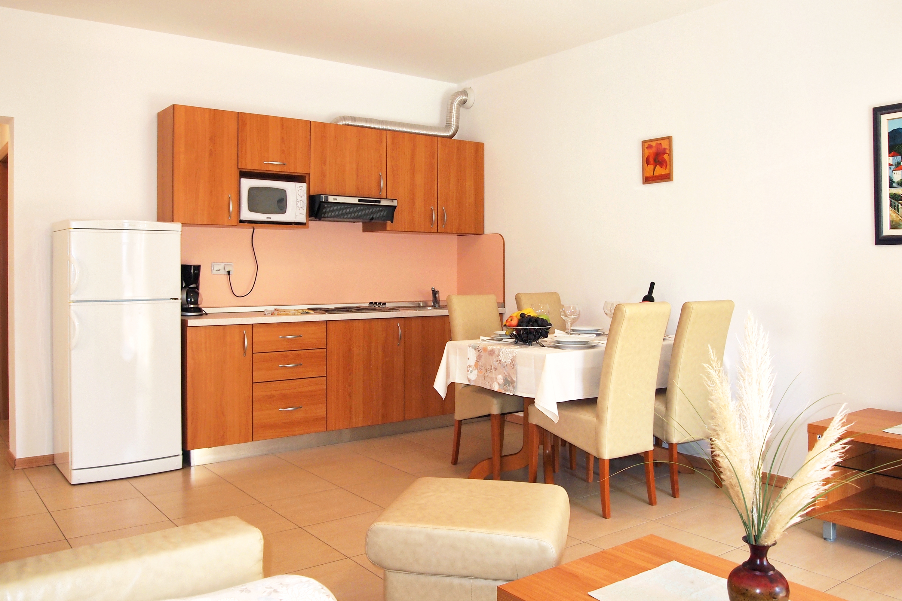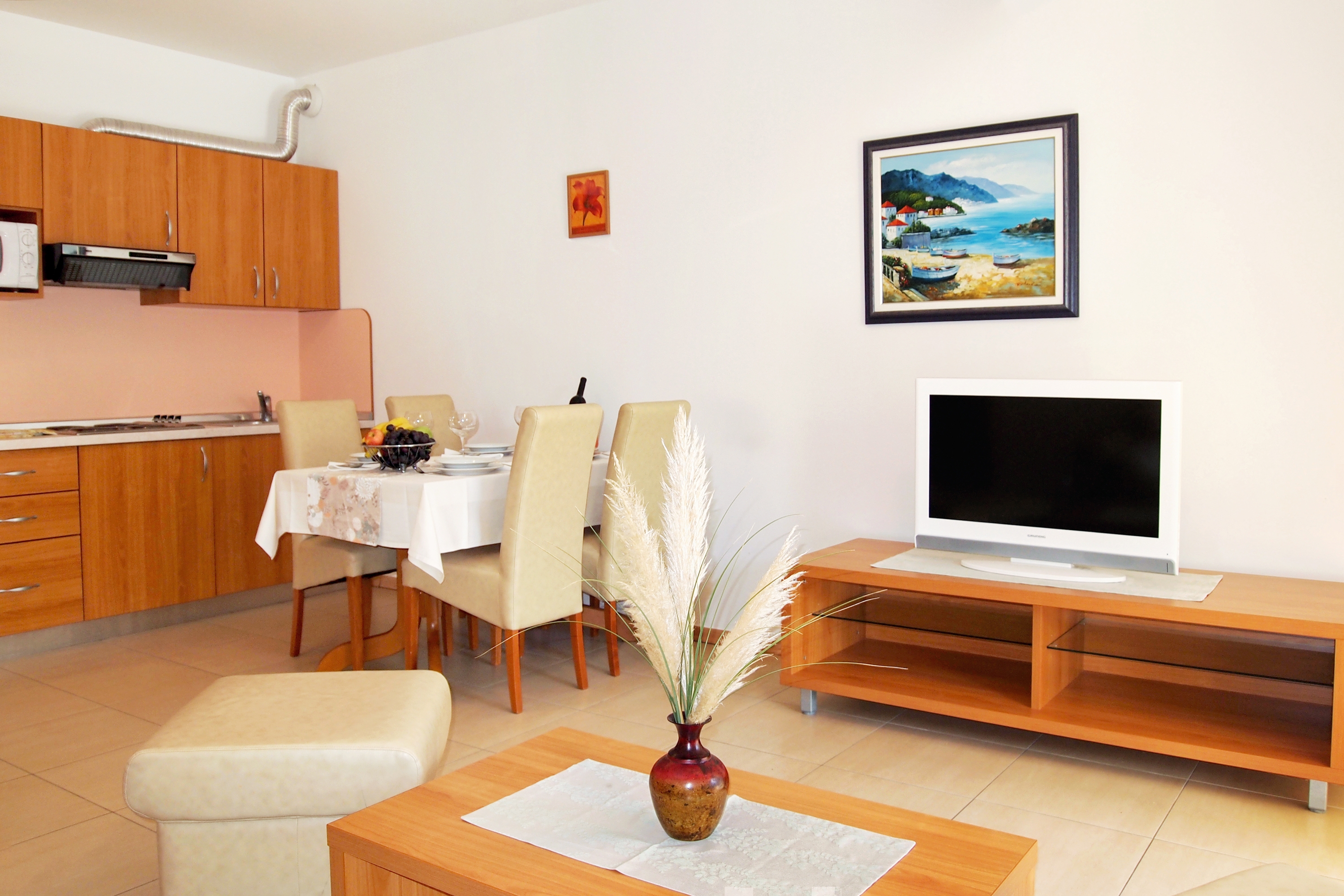 Apartment can accommodate 4 guests. Beds are situated in 1 sleeping rooms, but also in the living room, within 39m2. Guests can use a private terrace to enjoy the warm summer evenings. Food can be prepared using barbecue which is shared with other guests too. Shared pool is on disposal during stay. For the booked accommodation unit the deposit is paid directly to the owner upon check-in (deposit amount is displayed on the website) INCLUDED IN THE PRICE: final cleaning, air-conditioning, pool, parking, internet, hairdryer. OBLIGATORY ADDITIONAL COSTS: tourist tax (adults €0.93 - €1.90 nightperson, discount for children aged 12 - 17), deposit (€100.00 one-time payment). The availability of additional services for your chosen dates of stay, as well as their prices (if none are listed) must be checked ahead of time. Any additional services not shown in the price calculation are payable directly to the property owner and only if used by the visitor.