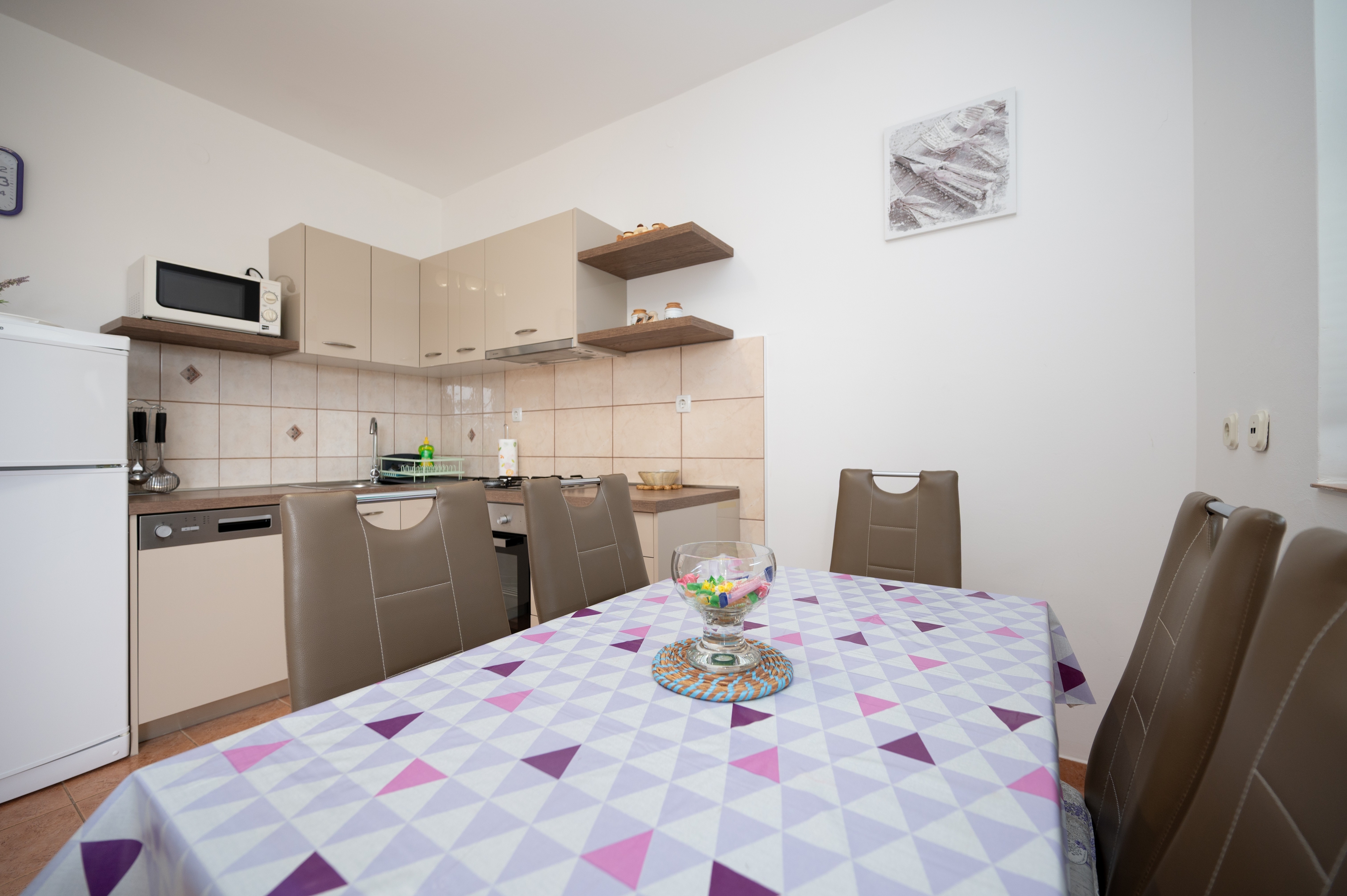 Apartment can accommodate 4 guests. Beds are situated in 2 sleeping rooms, within 49m2. Guests can use a private terrace to enjoy the warm summer evenings. The apartment offers the sea view. Food can be prepared using barbecue which is shared with other guests too. This accommodation unit welcomes pets at an additional charge. INCLUDED IN THE PRICE: tourist tax, final cleaning, air-conditioning, parking, internet, baby cot, iron, ironing board, hairdryer. OBLIGATORY ADDITIONAL COSTS: short stay fee (surcharge depending on a number of booked nights: 30% - 1, 20% - 2, 10% - 3). OPTIONAL ADDITIONAL COSTS: pets (€10.00 per night), 2 beds for children (€15.00 personnight). The availability of additional services for your chosen dates of stay, as well as their prices (if none are listed) must be checked ahead of time. Any additional services not shown in the price calculation are payable directly to the property owner and only if used by the visitor.