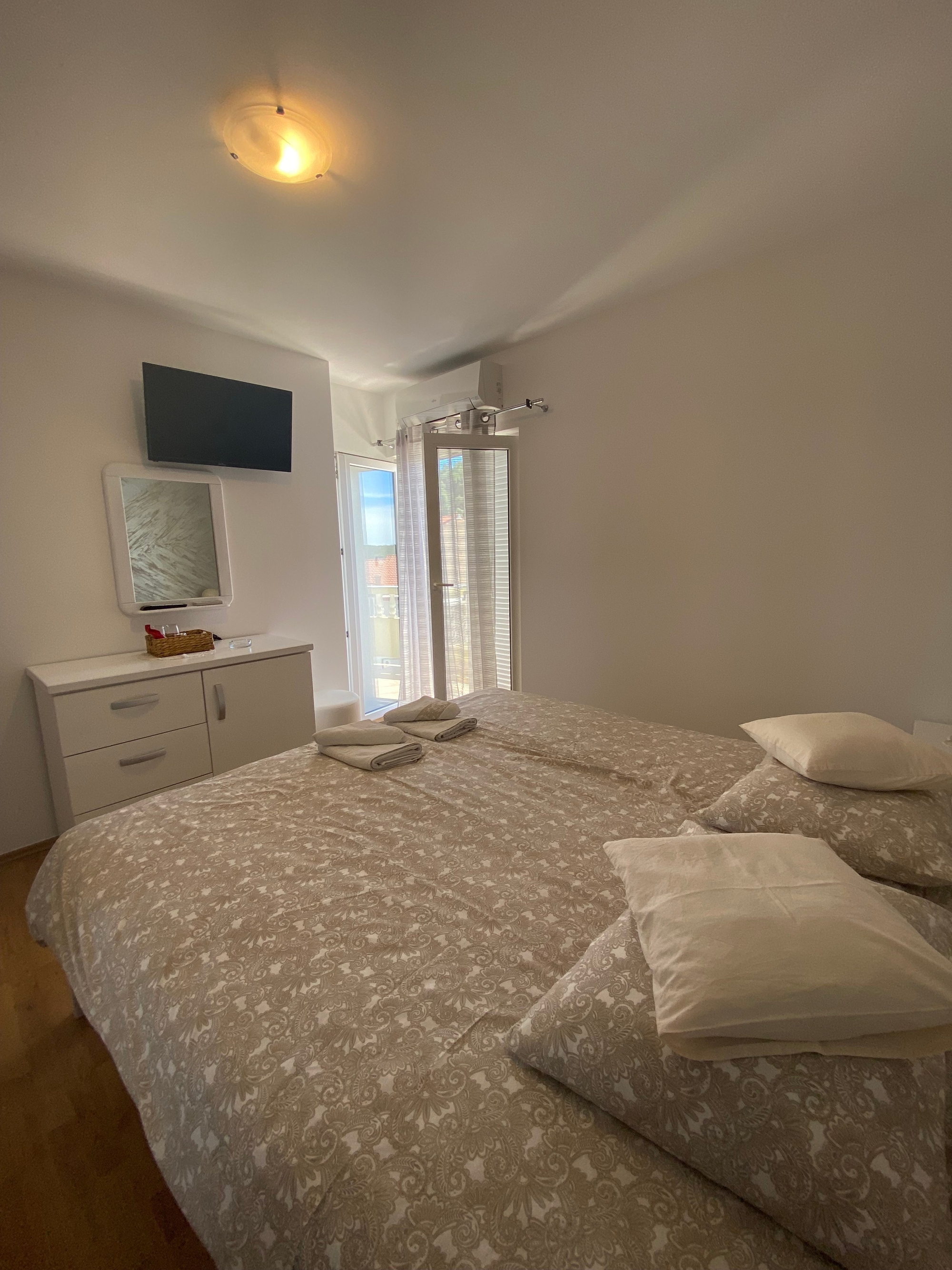 Room can accommodate 2 guests. Beds are situated in 1 sleeping rooms, within 17m2. Guests can use a private balcony to enjoy the warm summer evenings. The room offers the sea view. Food can be prepared using barbecue which is shared with other guests too. This accommodation unit welcomes pets at an additional charge. Reserved accommodation unit is a room with its own bathroom and there is no usage of kitchen. INCLUDED IN THE PRICE: tourist tax, final cleaning, air-conditioning, parking, internet, portable barbecue. OBLIGATORY ADDITIONAL COSTS: short stay fee (surcharge depending on a number of booked nights: 30% - 1, 20% - 2, 10% - 3). OPTIONAL ADDITIONAL COSTS: breakfast (€15.00, a 50% discount for children aged 4 to 12 years, Children up to age 4 free of charge), boat mooring (€10.00 per night), pets (€10.00 per night), additional bed (€10.00 per night). The availability of additional services for your chosen dates of stay, as well as their prices (if none are listed) must be checked ahead of time. Any additional services not shown in the price calculation are payable directly to the property owner and only if used by the visitor.