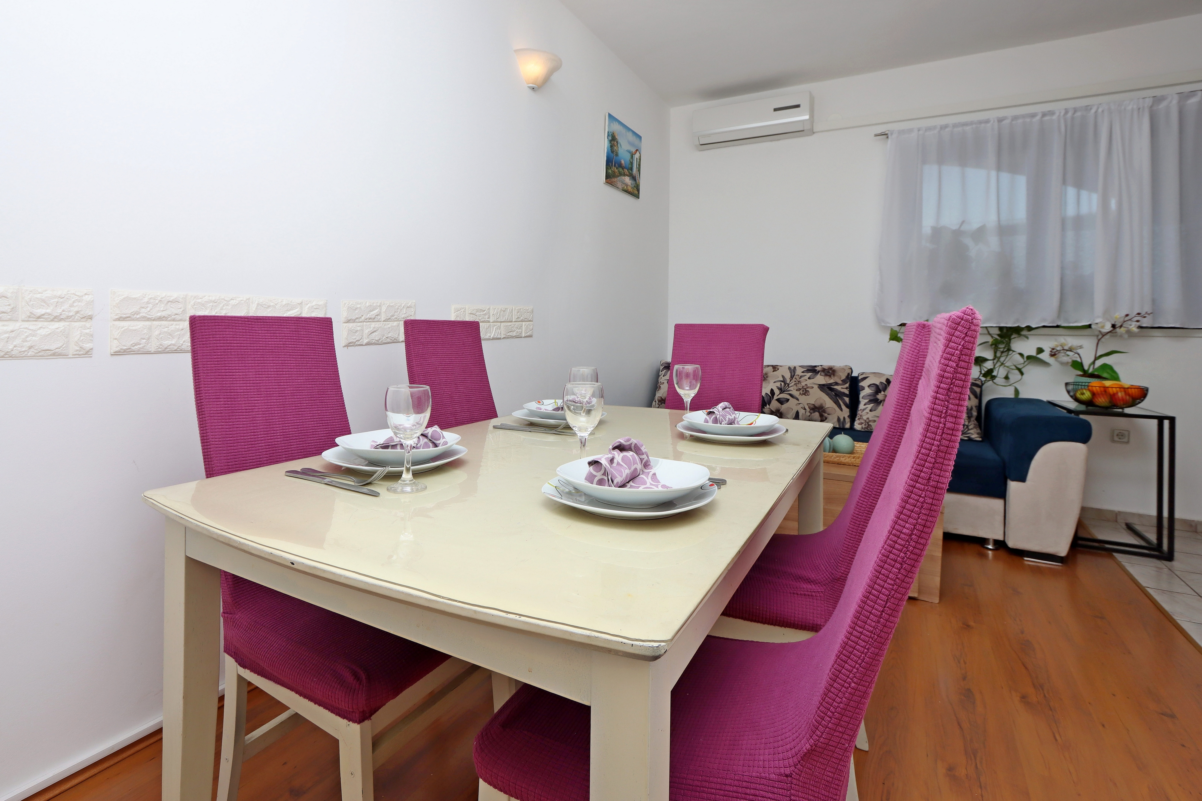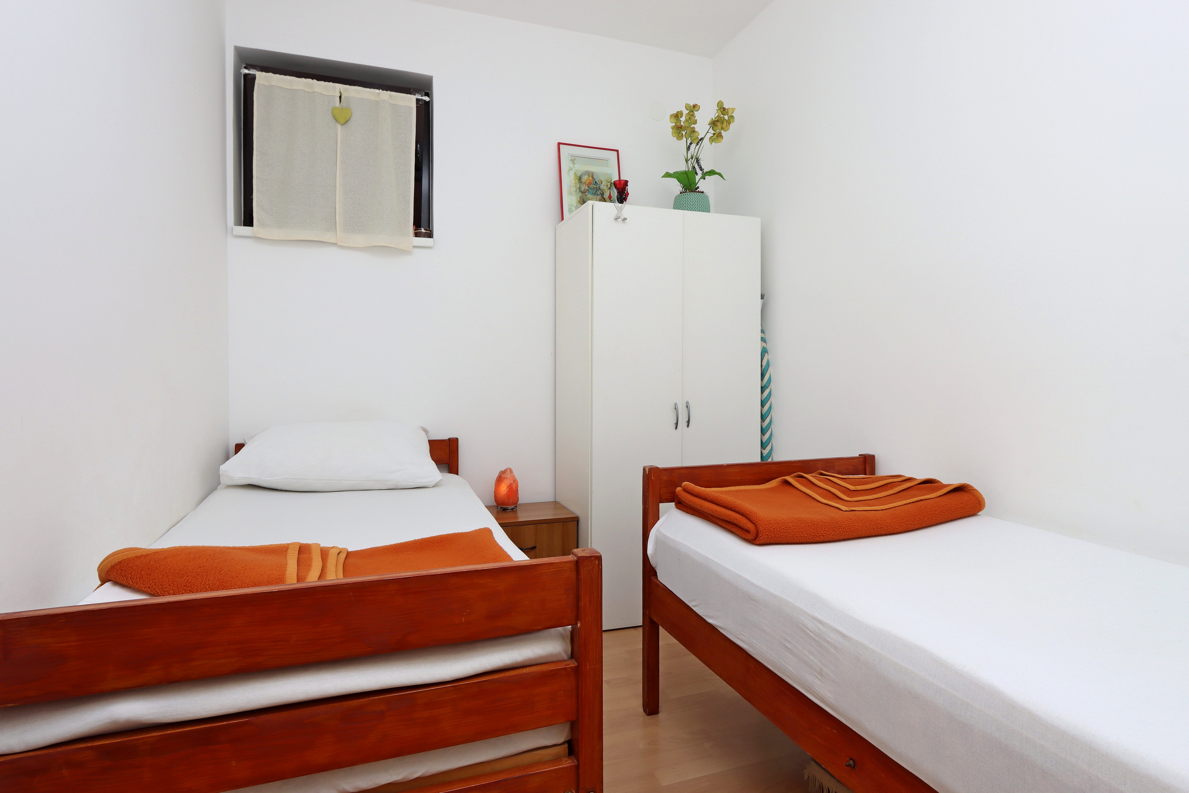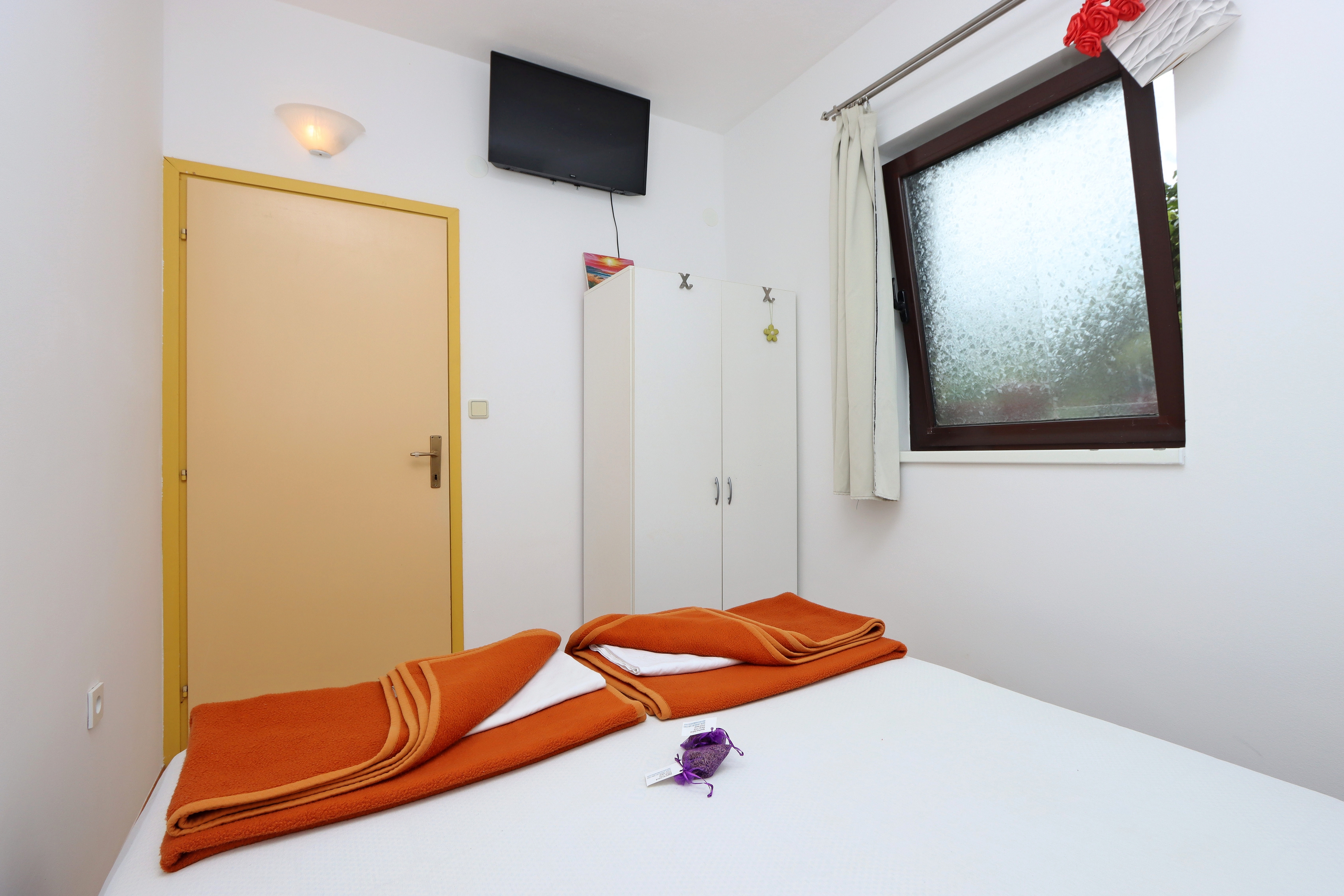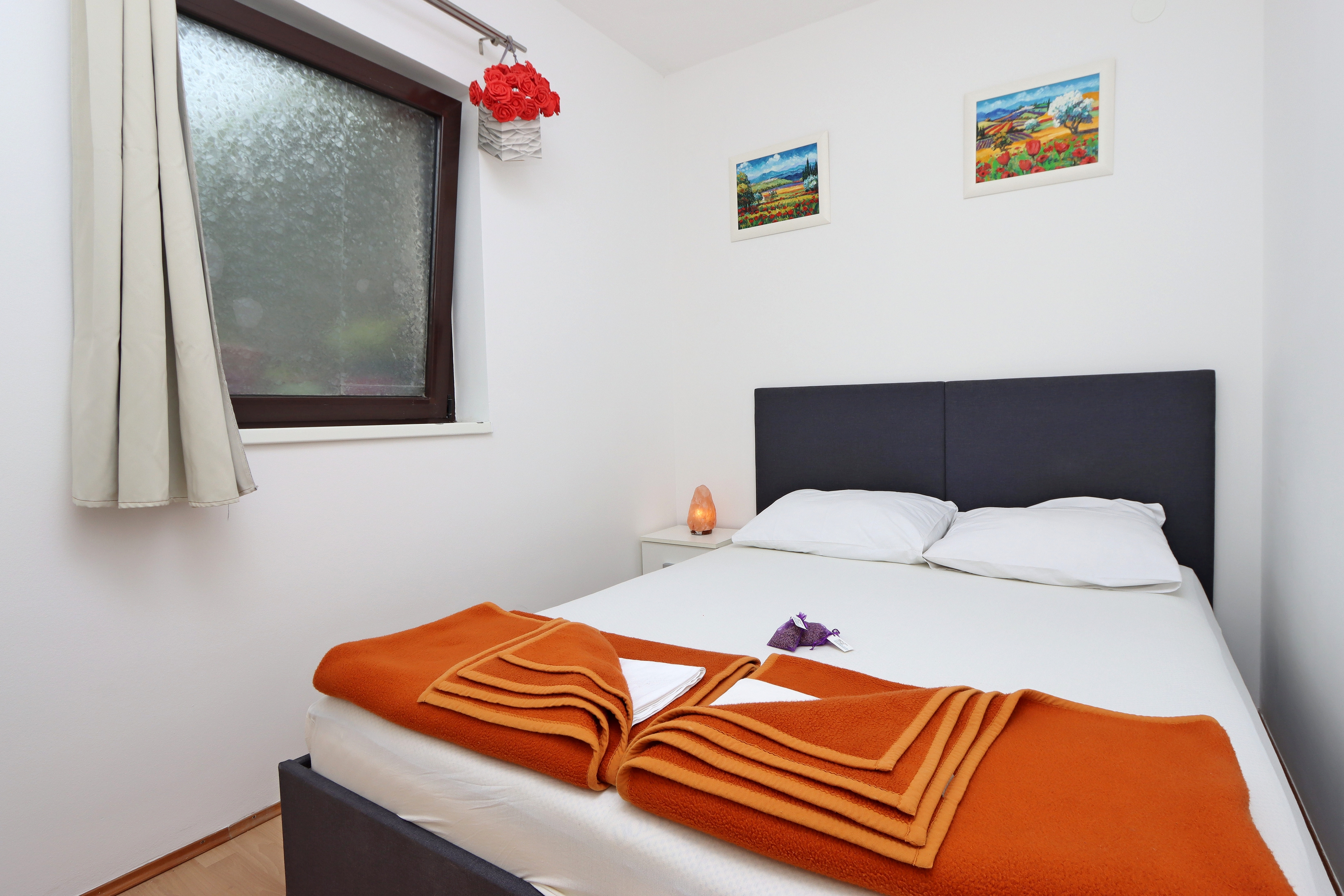 Apartment can accommodate 4 guests. Beds are situated in 2 sleeping rooms, within 43m2. Food can be prepared using barbecue which is shared with other guests too. There is no balcony or terrace in the reserved accommodation unit. INCLUDED IN THE PRICE: tourist tax, final cleaning, air-conditioning, internet, baby cot, iron, ironing board, hairdryer, sunchairs. The availability of additional services for your chosen dates of stay, as well as their prices (if none are listed) must be checked ahead of time. Any additional services not shown in the price calculation are payable directly to the property owner and only if used by the visitor. Discounts to the base price: free day 21=19 (for reservations of 21 or more days you get 2 free days for the stay until 31122026).
