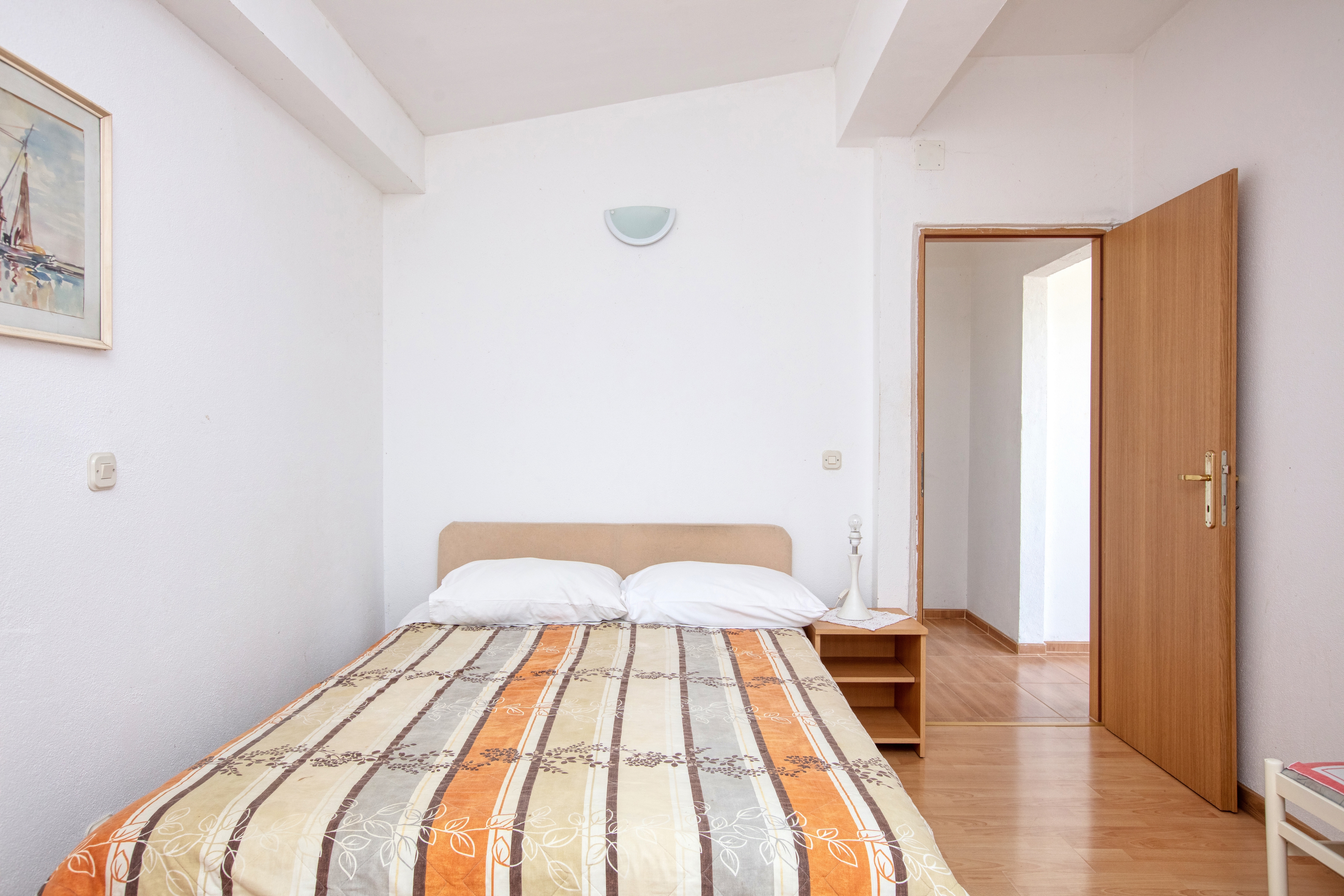 Apartment can accommodate 4 guests. Beds are situated in 1 sleeping rooms, but also in the living room, within 32m2. Guests can use a private terrace to enjoy the warm summer evenings. The apartment offers the sea view. Food can be prepared using barbecue which is shared with other guests too. This accommodation unit welcomes pets at an additional charge. INCLUDED IN THE PRICE: tourist tax, final cleaning, air-conditioning, parking, internet, laundry, boat mooring, iron, ironing board, hairdryer, portable barbecue. OBLIGATORY ADDITIONAL COSTS: short stay fee (surcharge depending on a number of booked nights: 30% - 1, 20% - 2, 10% - 3). OPTIONAL ADDITIONAL COSTS: pets (€5.00 per night). The availability of additional services for your chosen dates of stay, as well as their prices (if none are listed) must be checked ahead of time. Any additional services not shown in the price calculation are payable directly to the property owner and only if used by the visitor. Discounts to the base price: free day 14=13 (for reservations of 14 or more days you get one free day for the stay until 31122026).