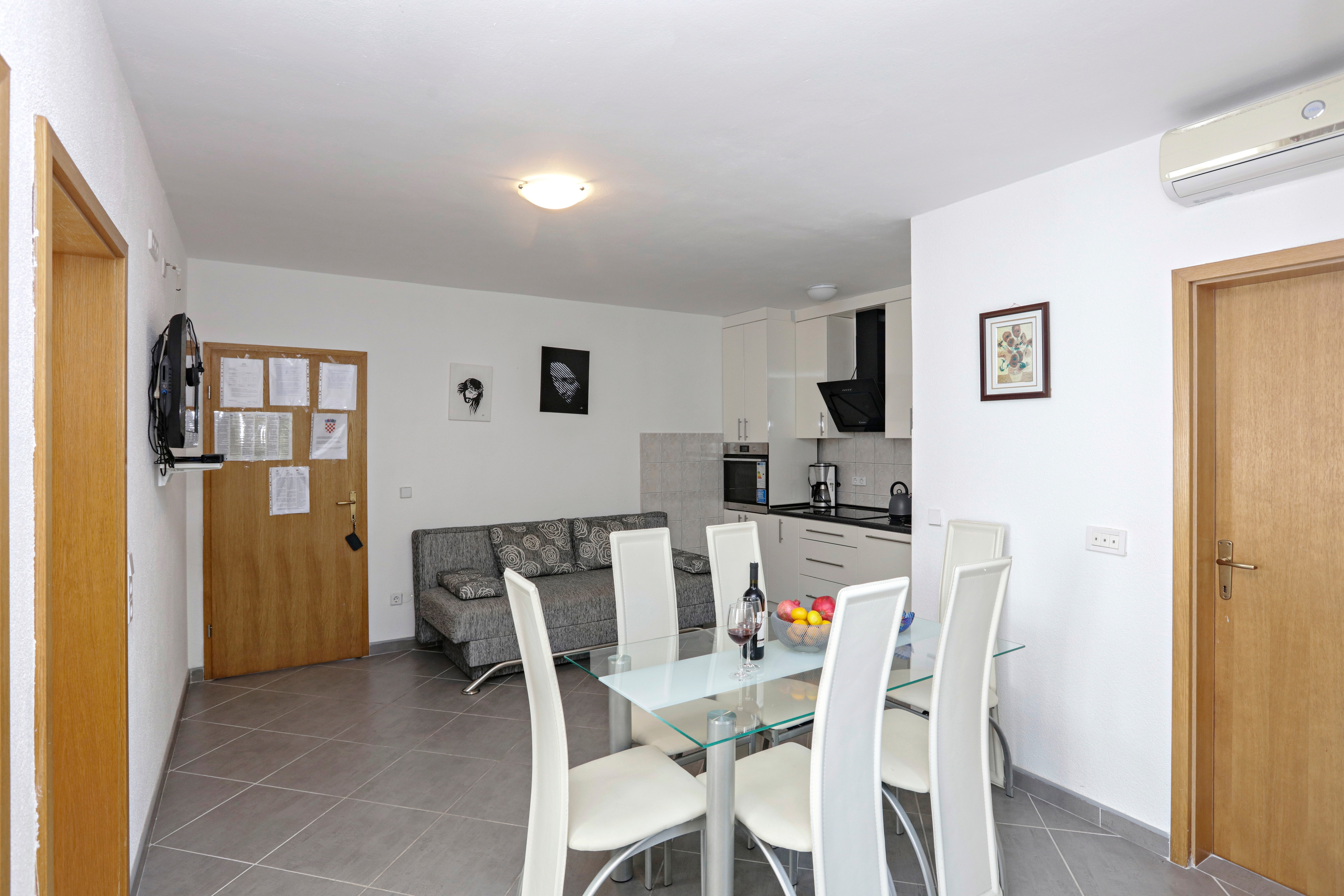 Apartment can accommodate 4 guests. Beds are situated in 2 sleeping rooms, within 43m2. Guests can use a private balcony to enjoy the warm summer evenings. The apartment offers the sea view. Food can be prepared using barbecue which is shared with other guests too. Shared pool is on disposal during stay. INCLUDED IN THE PRICE: tourist tax, final cleaning, air-conditioning, pool, parking, internet, baby cot, iron, ironing board, hairdryer, sunshade. The availability of additional services for your chosen dates of stay, as well as their prices (if none are listed) must be checked ahead of time. Any additional services not shown in the price calculation are payable directly to the property owner and only if used by the visitor.