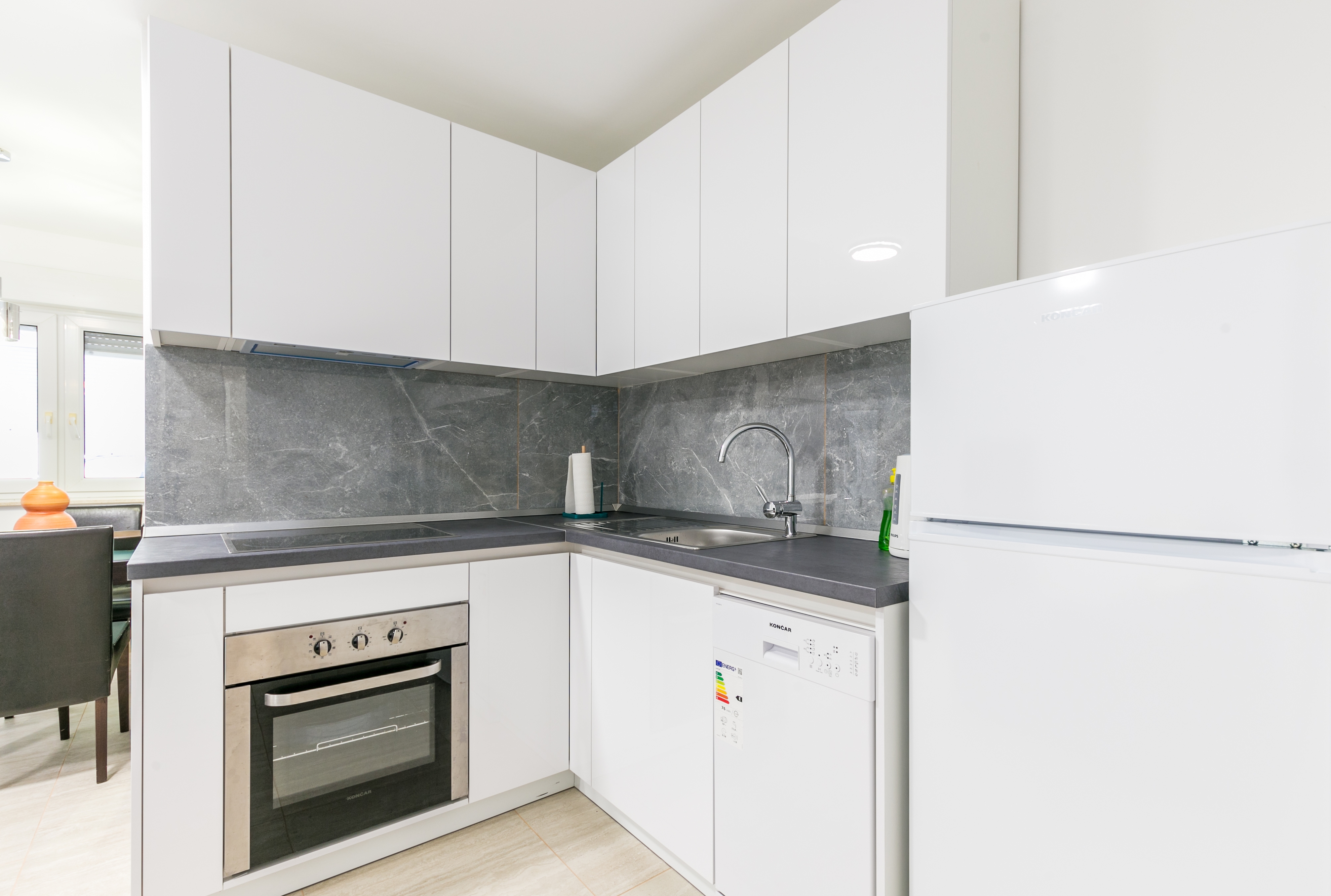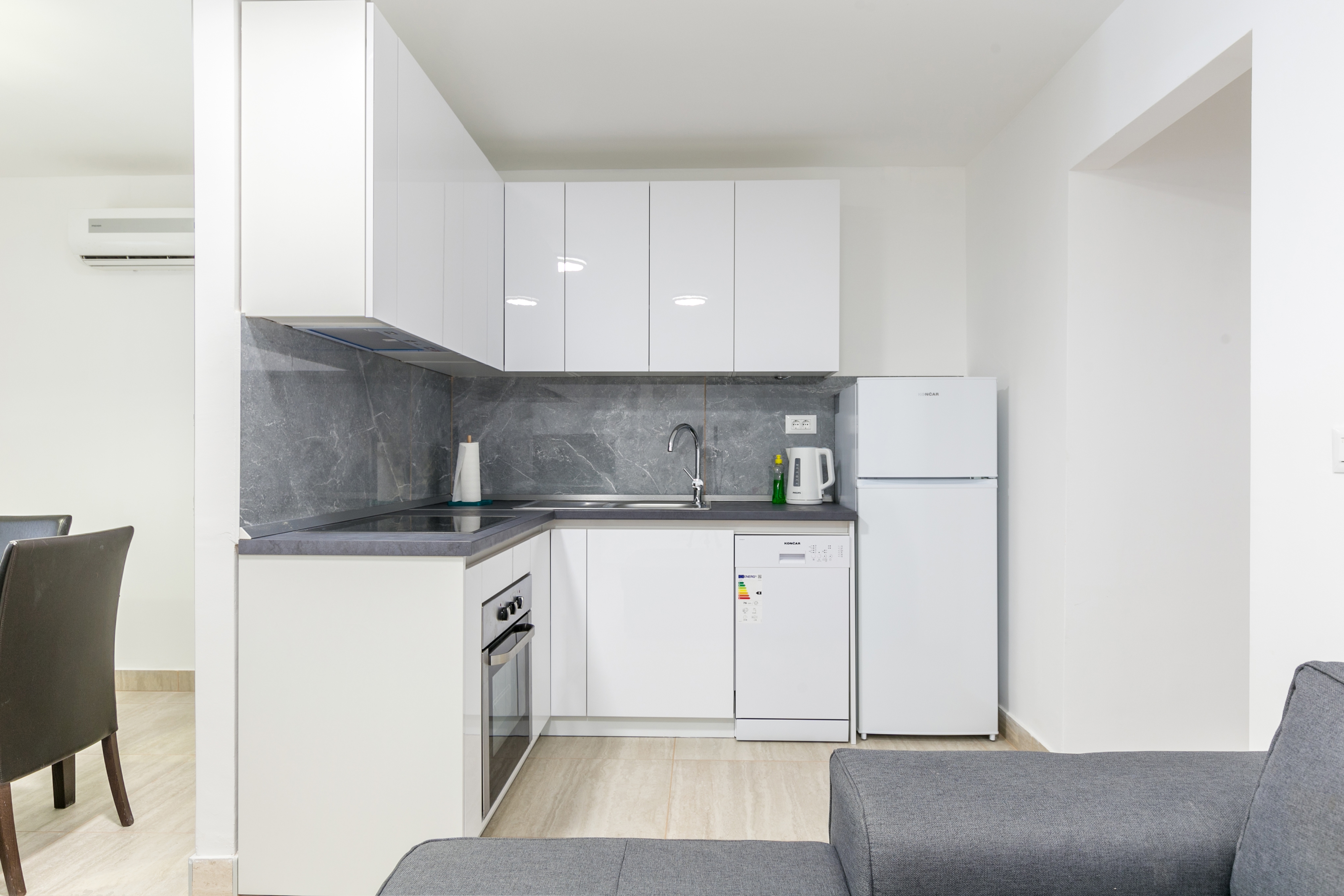 Apartment can accommodate 4 guests. Beds are situated in 1 sleeping rooms, but also in the living room, within 50m2. Guests can use a private terrace to enjoy the warm summer evenings. INCLUDED IN THE PRICE: tourist tax, final cleaning, air-conditioning, parking, internet, baby cot, iron, hairdryer. OBLIGATORY ADDITIONAL COSTS: short stay fee (surcharge depending on a number of booked nights: 30% - 1, 20% - 2, 10% - 3). The availability of additional services for your chosen dates of stay, as well as their prices (if none are listed) must be checked ahead of time. Any additional services not shown in the price calculation are payable directly to the property owner and only if used by the visitor.