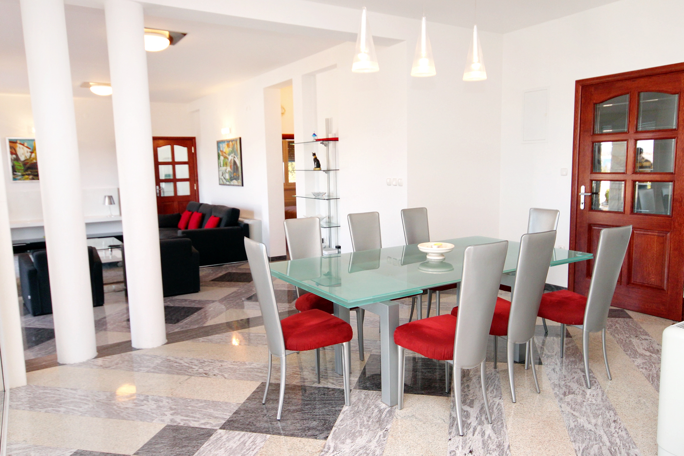 House 7557 in the town of Rogoznica, Rogoznica - North Dalmatia contains accommodation units of type Apartment (2), Studio flat (2) and is 5 m away from the sea. The nearest beach to this accommodation is a pebble beach. The house is categorized as "Facilities with a swimming pool". As the house is dividedseveral accommodation units, other guests will most likely be present during your stay. The hosts will not be in the house for the duration of your holiday. The house owner is under no obligation to accept additional persons and pets that were not stated in the reservation request and it is necessary to report them in advance.AMENITIES Courtyard (250m2, Area suitable for children, Sitting area), Parking lot (Number of parking spaces: 4, Distance from the house: In the courtyard), Pool: shared, Dimensions: 10m x 4m x 2m, Type of water: Freshwater, Barbecue: shared, WiFi Internet, Laundry service, Hairdryer, Ironing board, Baby cot LOCATION AND ACCESS The facility is not located near the road There is no road between the property and the beach The property is located by the beach Car access possible: Yes The facility is not located in quiet surroundings The property isnt surrounded by greenery DISTANCES Sea: 5 m Beach: 5 m Center: 850 m Shop: 800 m Urgent medical care: 4.5 km Pharmacy: 850 m Exchange office: 850 m ATMBank machine: 850 m Tourist info: 850 m