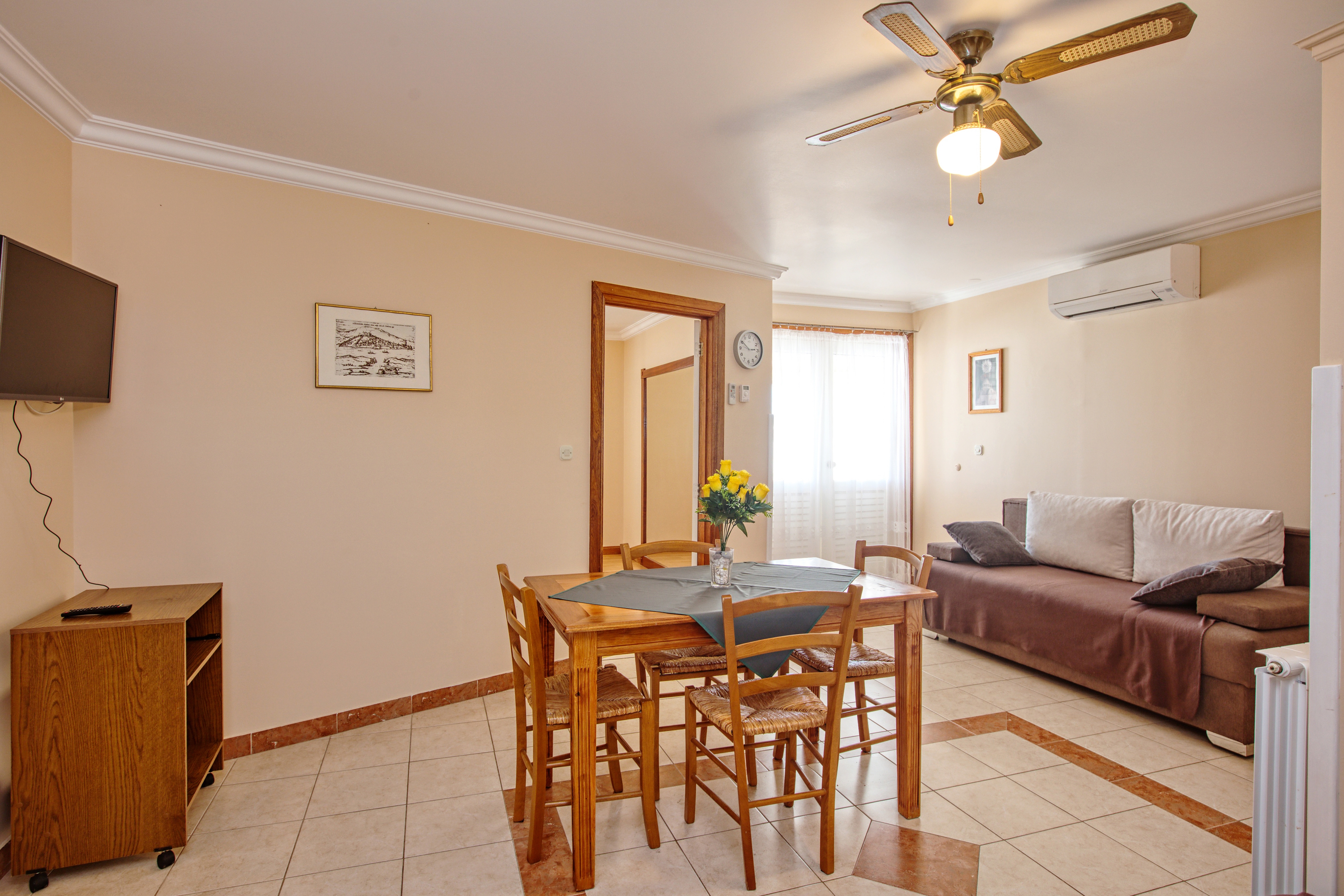 Apartment can accommodate 4 guests. Beds are situated in 1 sleeping rooms, but also in the living room, within 41m2. Guests can use a private terrace to enjoy the warm summer evenings. The apartment offers the sea view. Food can be prepared using barbecue which is shared with other guests too. INCLUDED IN THE PRICE: tourist tax, final cleaning, air-conditioning, parking, internet, boat mooring, hairdryer, sunshade, sunchairs. OPTIONAL ADDITIONAL COSTS: laundry (€5.00 washing). The availability of additional services for your chosen dates of stay, as well as their prices (if none are listed) must be checked ahead of time. Any additional services not shown in the price calculation are payable directly to the property owner and only if used by the visitor. Discounts to the base price: free day 14=13 (for reservations of 14 or more days you get one free day for the stay until 31122026).