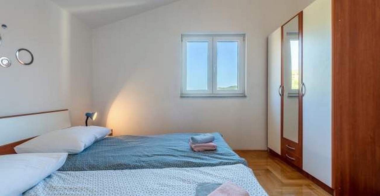 Apartment can accommodate 5 guests. Beds are situated in 2 sleeping rooms, within 56m2. Guests can use a private terrace to enjoy the warm summer evenings. The apartment offers the sea view. Food can be prepared using barbecue which is shared with other guests too. INCLUDED IN THE PRICE: tourist tax, final cleaning, air-conditioning, parking, internet. OBLIGATORY ADDITIONAL COSTS: short stay fee (surcharge depending on a number of booked nights: 30% - 1, 20% - 2, 10% - 3). The availability of additional services for your chosen dates of stay, as well as their prices (if none are listed) must be checked ahead of time. Any additional services not shown in the price calculation are payable directly to the property owner and only if used by the visitor.