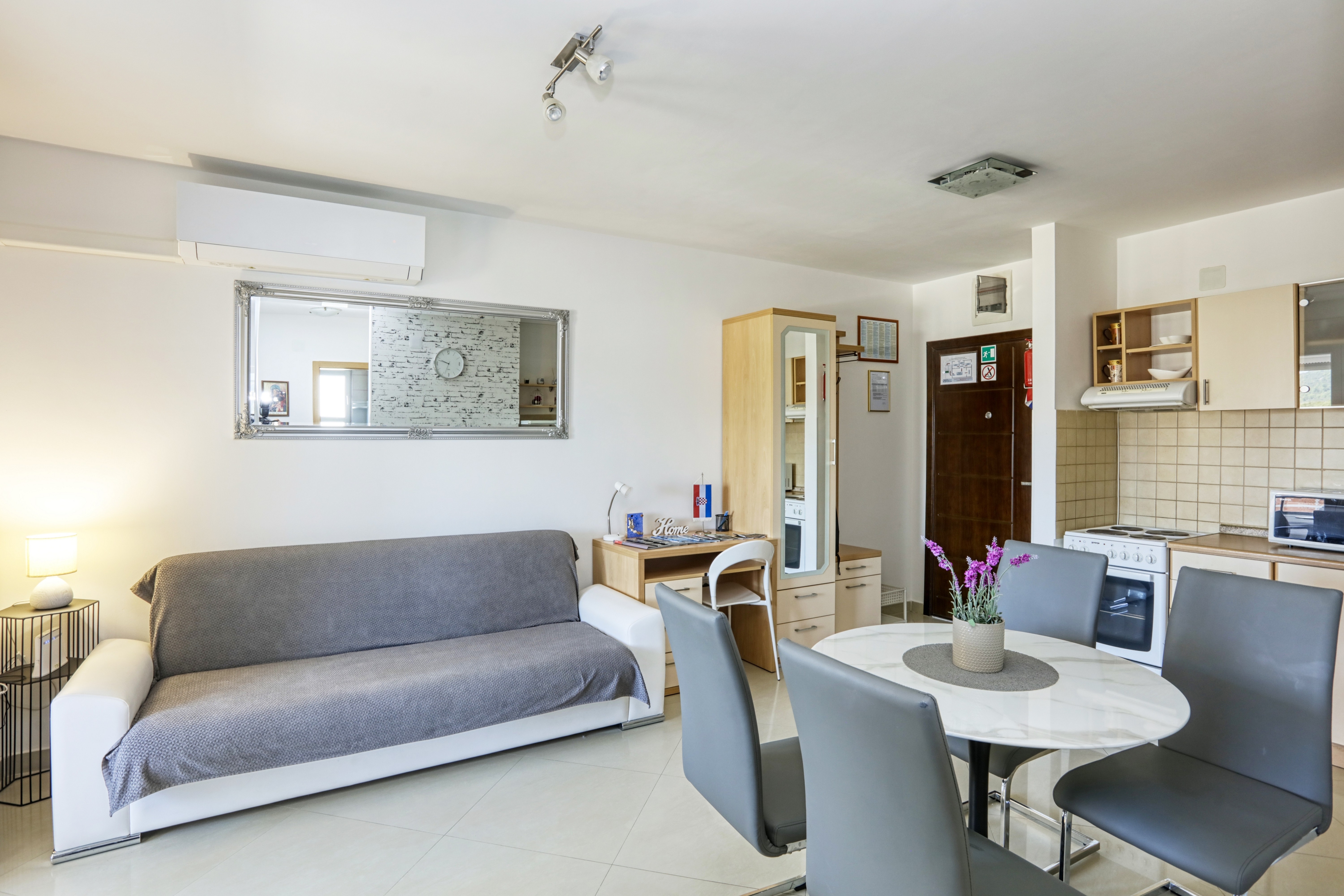 Apartment can accommodate 4 guests. Beds are situated in 2 sleeping rooms, within 41m2. Guests can use a private balcony to enjoy the warm summer evenings. INCLUDED IN THE PRICE: tourist tax, final cleaning, air-conditioning, parking, internet, additional bed, iron, hairdryer. The availability of additional services for your chosen dates of stay, as well as their prices (if none are listed) must be checked ahead of time. Any additional services not shown in the price calculation are payable directly to the property owner and only if used by the visitor.