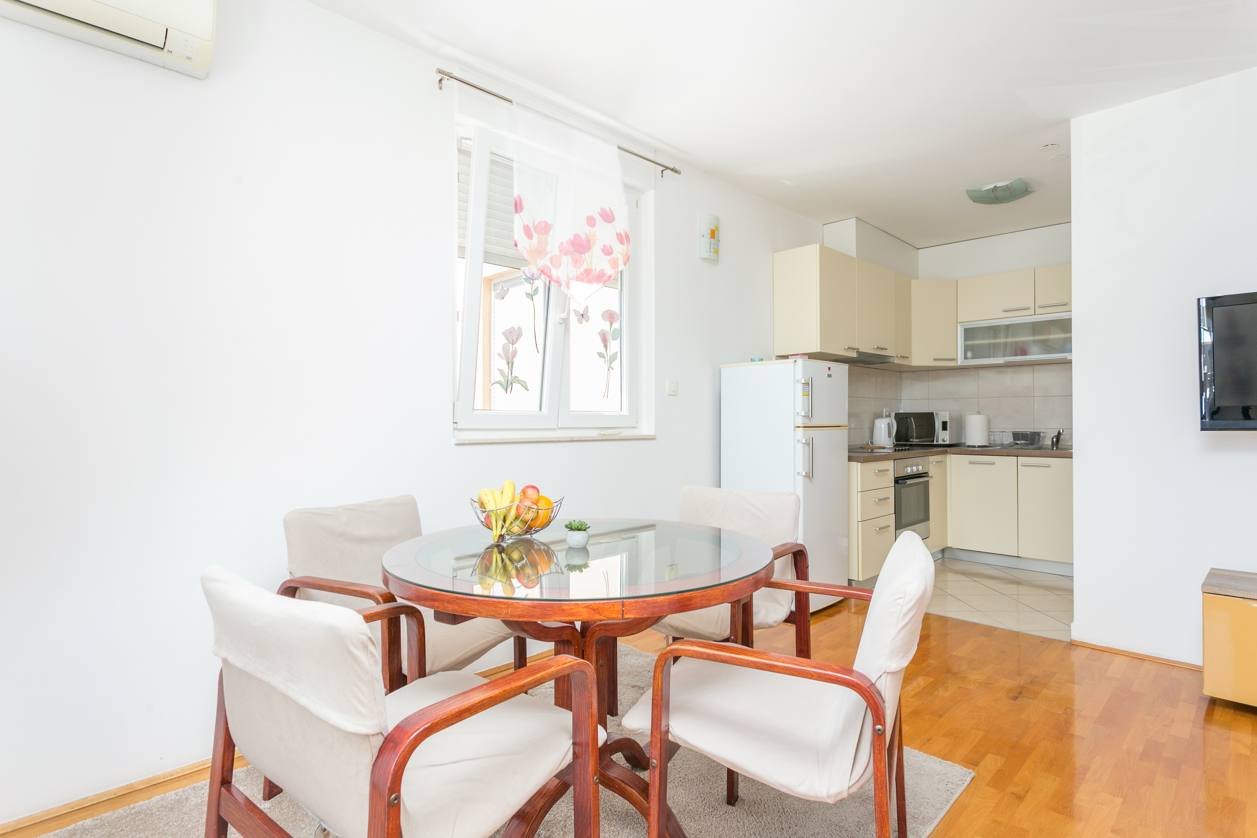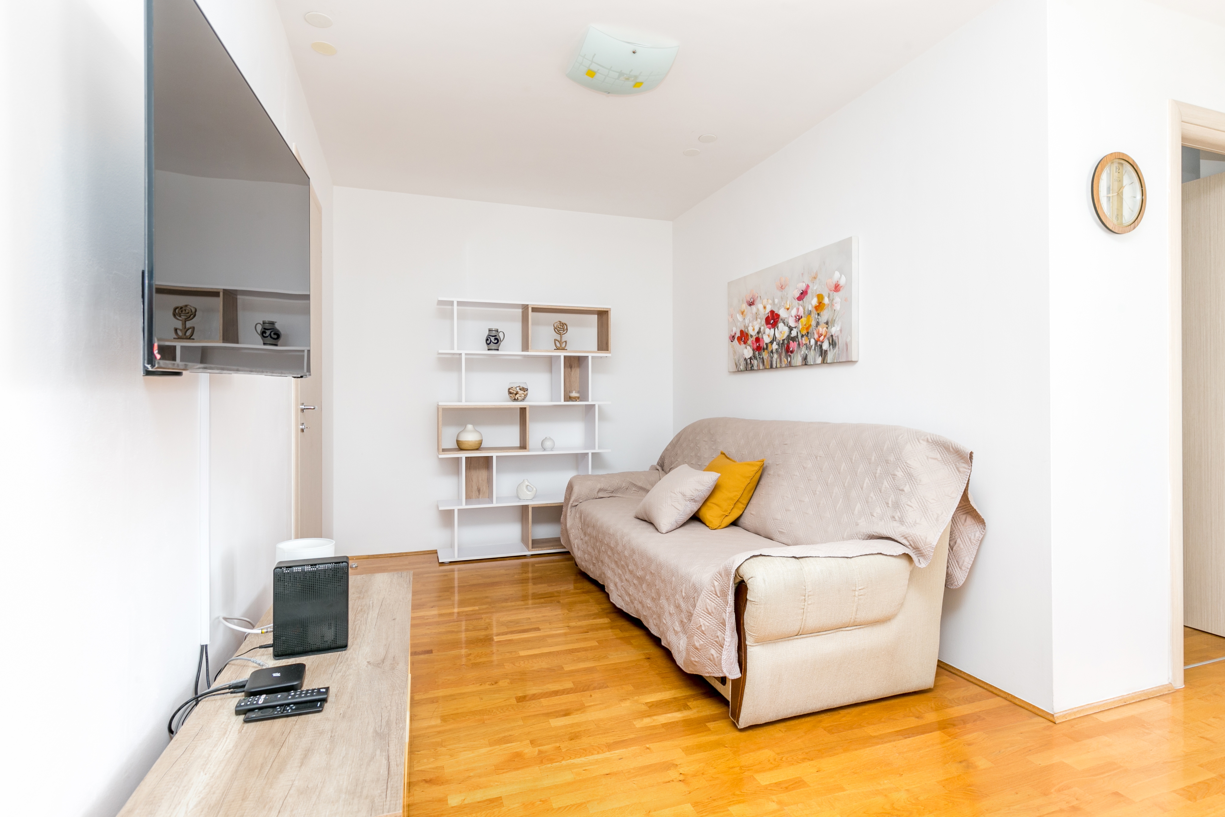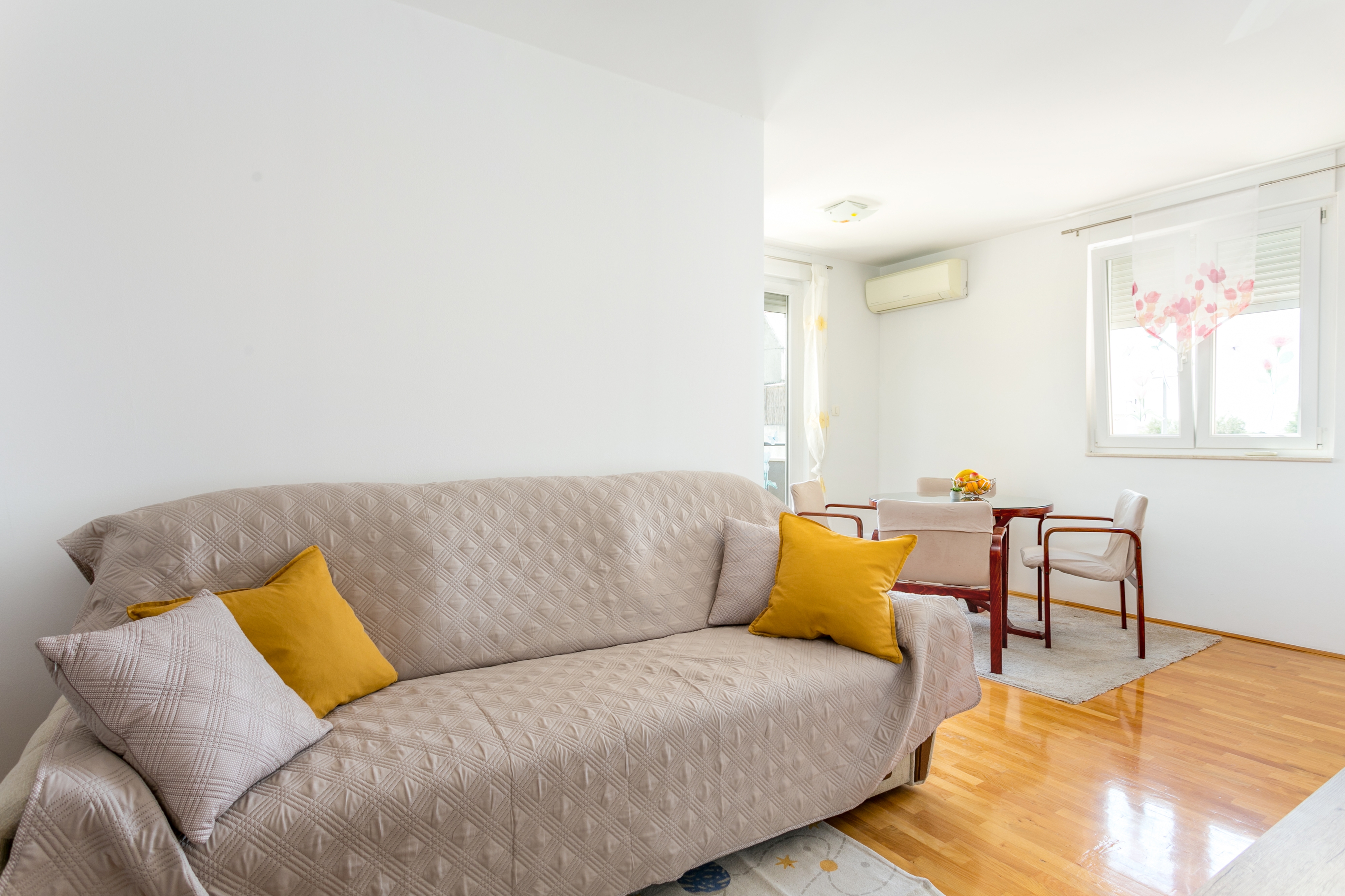 Apartment can accommodate 4 guests. Beds are situated in 1 sleeping rooms, but also in the living room, within 37m2. Guests can use a private terrace to enjoy the warm summer evenings. INCLUDED IN THE PRICE: tourist tax, final cleaning, air-conditioning, parking, internet, iron, ironing board, hairdryer. The availability of additional services for your chosen dates of stay, as well as their prices (if none are listed) must be checked ahead of time. Any additional services not shown in the price calculation are payable directly to the property owner and only if used by the visitor.