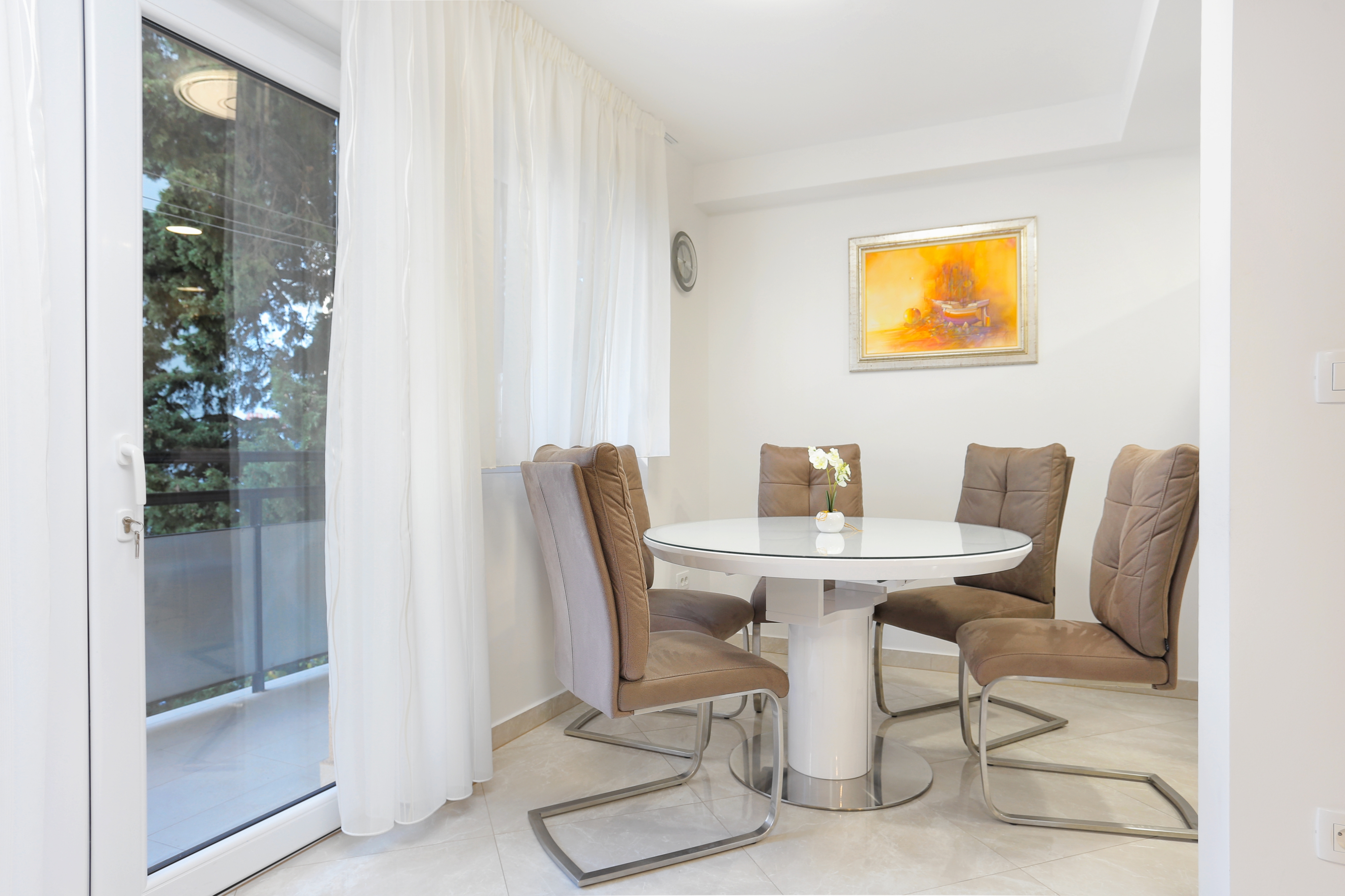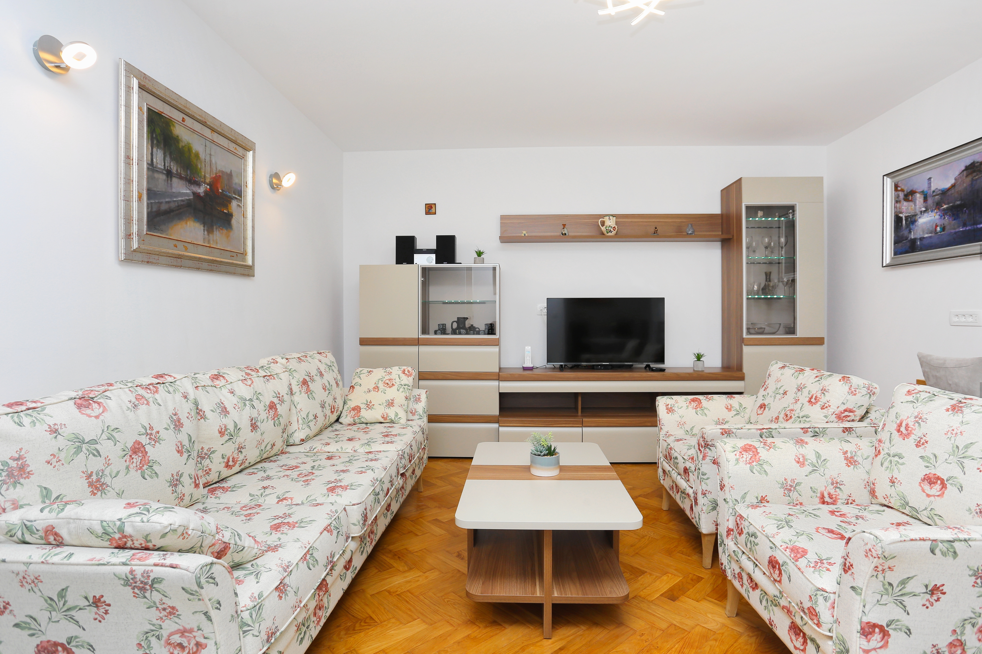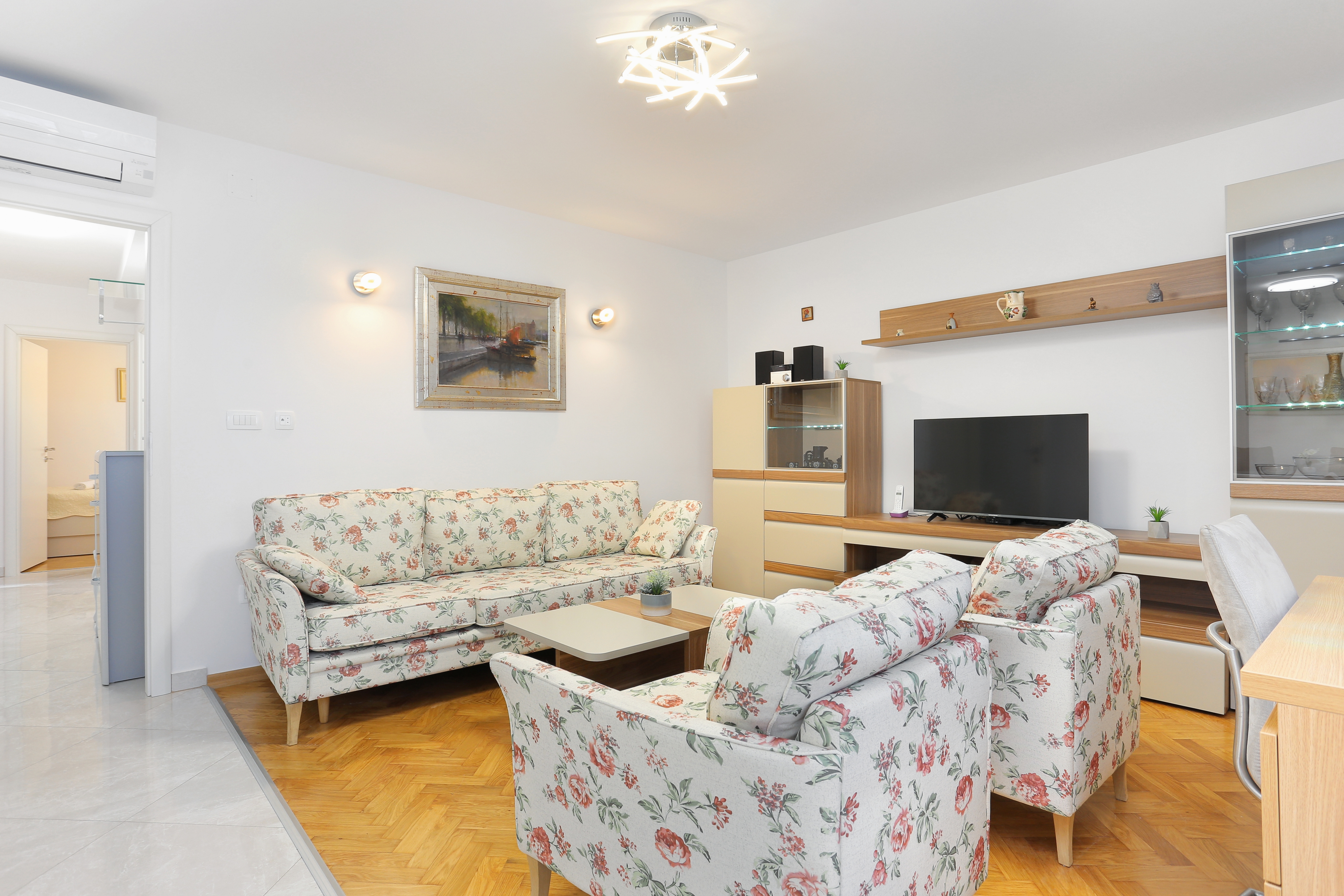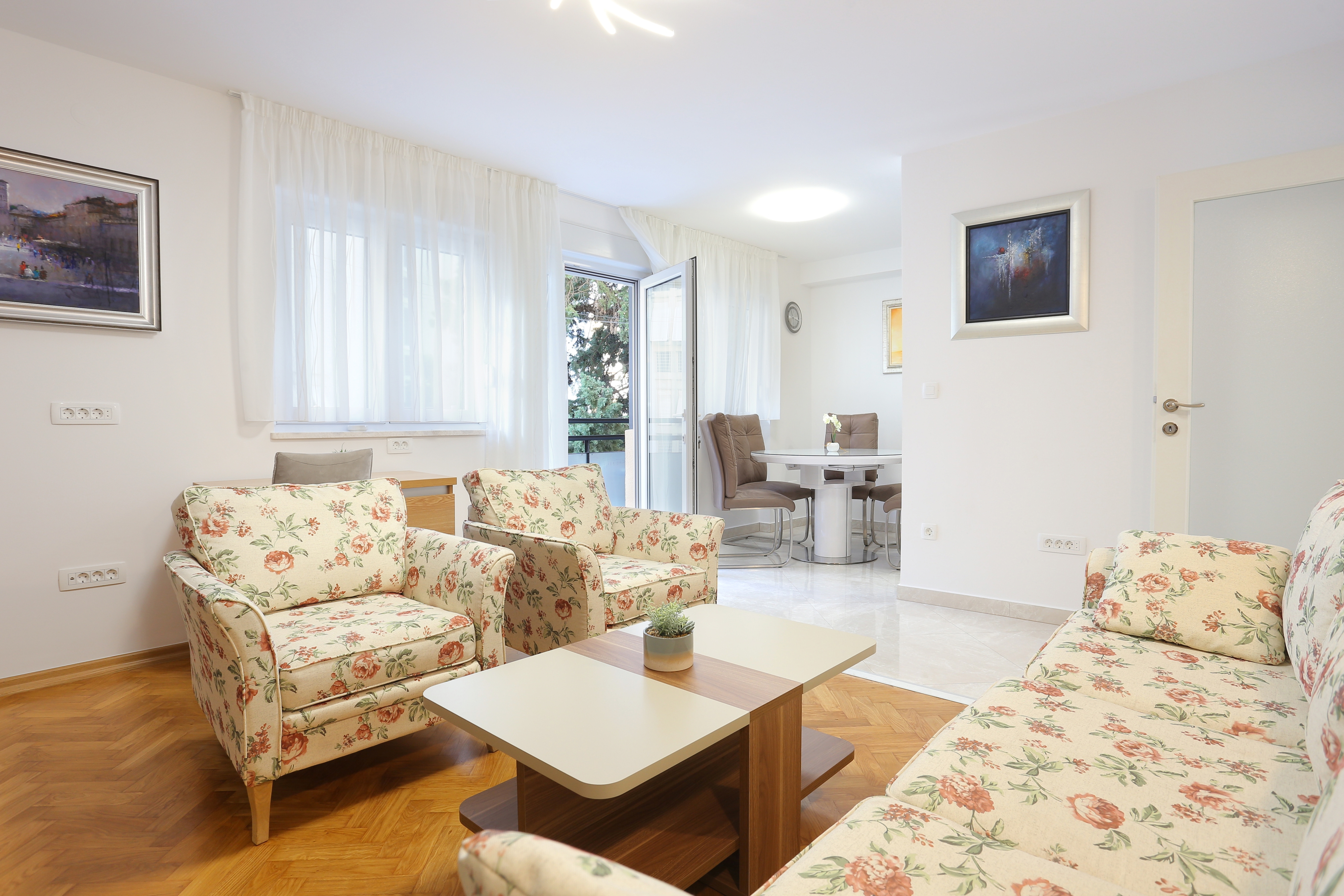 Apartment can accommodate 5 guests. Beds are situated in 2 sleeping rooms, but also in the living room, within 61m2. Guests can use a private balcony to enjoy the warm summer evenings. For the booked accommodation unit the deposit is paid directly to the owner upon check-in (deposit amount is displayed on the website) INCLUDED IN THE PRICE: tourist tax, final cleaning, air-conditioning, internet, iron, ironing board, hairdryer. OBLIGATORY ADDITIONAL COSTS: deposit (€200.00 one-time payment), short stay fee (surcharge depending on a number of booked nights: 30% - 1, 20% - 2, 10% - 3). The availability of additional services for your chosen dates of stay, as well as their prices (if none are listed) must be checked ahead of time. Any additional services not shown in the price calculation are payable directly to the property owner and only if used by the visitor.