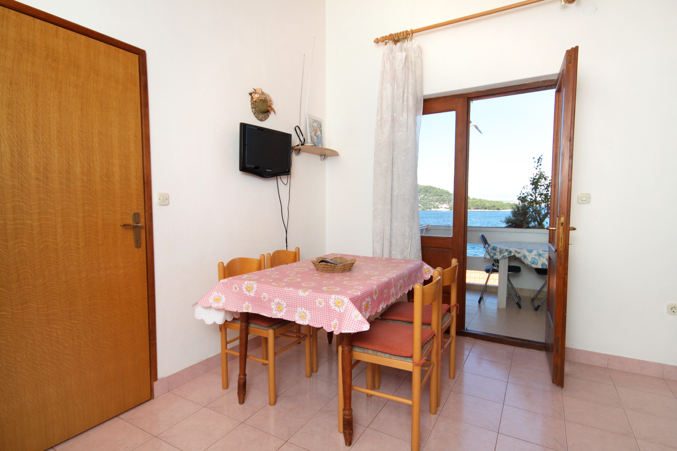 Apartment can accommodate 3 guests. Beds are situated in 1 sleeping rooms, but also in the living room, within 38m2. Guests can use a private terrace to enjoy the warm summer evenings. The apartment offers the sea view. Food can be prepared using barbecue which is shared with other guests too. INCLUDED IN THE PRICE: tourist tax, final cleaning, air-conditioning, internet, boat mooring, iron, ironing board, hairdryer. OBLIGATORY ADDITIONAL COSTS: short stay fee (surcharge depending on a number of booked nights: 30% - 1, 20% - 2, 10% - 3). The availability of additional services for your chosen dates of stay, as well as their prices (if none are listed) must be checked ahead of time. Any additional services not shown in the price calculation are payable directly to the property owner and only if used by the visitor. Discounts to the base price: free day 14=13 (for reservations of 14 or more days you get one free day for the stay until 31122026).
