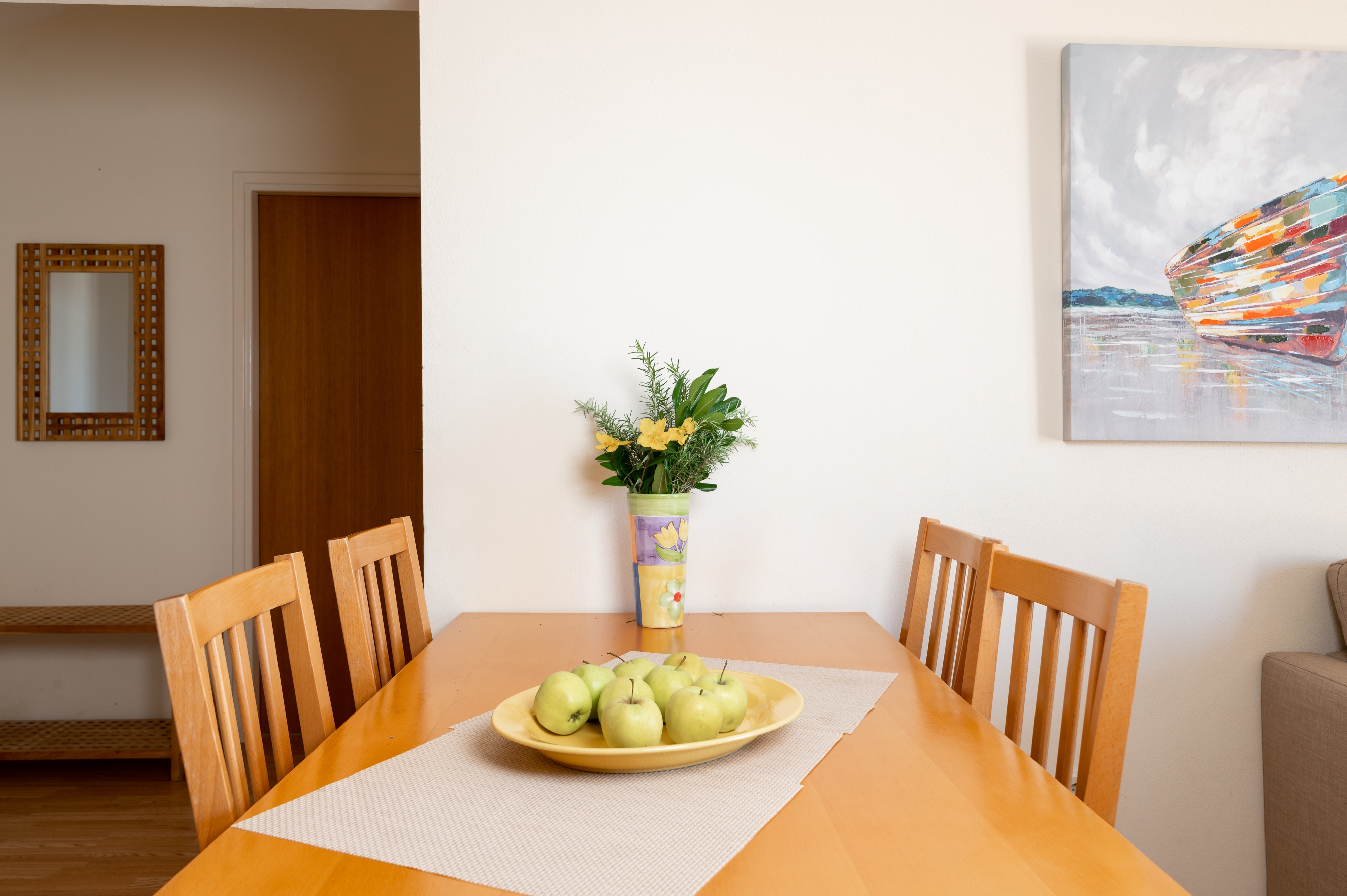 Apartment can accommodate 5 guests. Beds are situated in 2 sleeping rooms, but also in the living room, within 49m2. Guests can use a private terrace to enjoy the warm summer evenings. The apartment offers the sea view. Food can be prepared using barbecue which is shared with other guests too. INCLUDED IN THE PRICE: tourist tax, final cleaning, air-conditioning, parking, internet, baby cot. OBLIGATORY ADDITIONAL COSTS: short stay fee (surcharge depending on a number of booked nights: 30% - 1, 20% - 2, 10% - 3). The availability of additional services for your chosen dates of stay, as well as their prices (if none are listed) must be checked ahead of time. Any additional services not shown in the price calculation are payable directly to the property owner and only if used by the visitor.