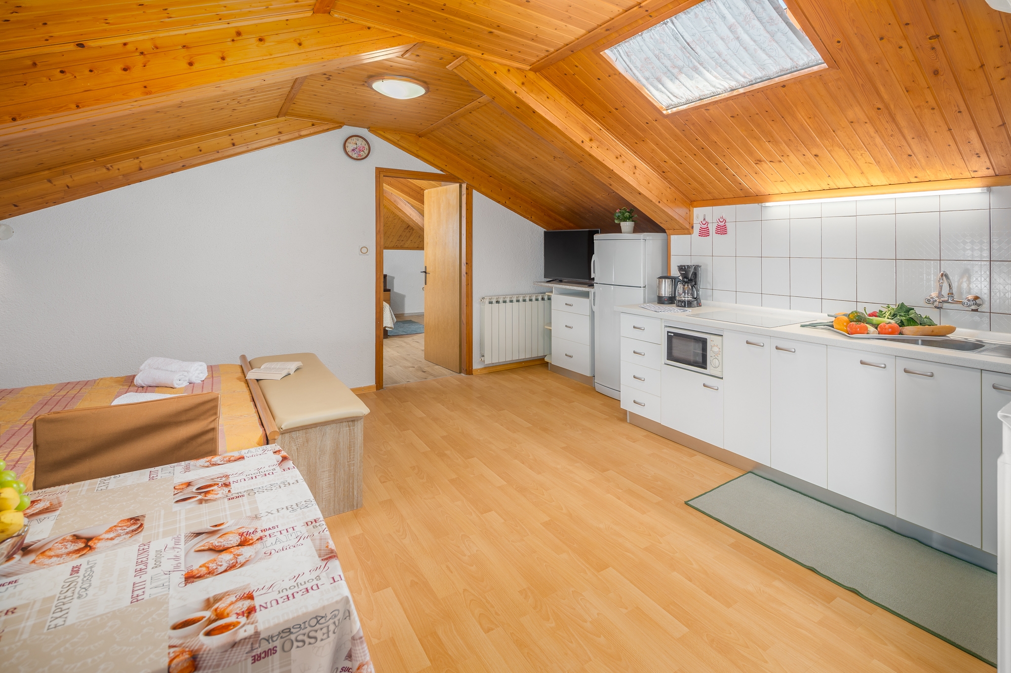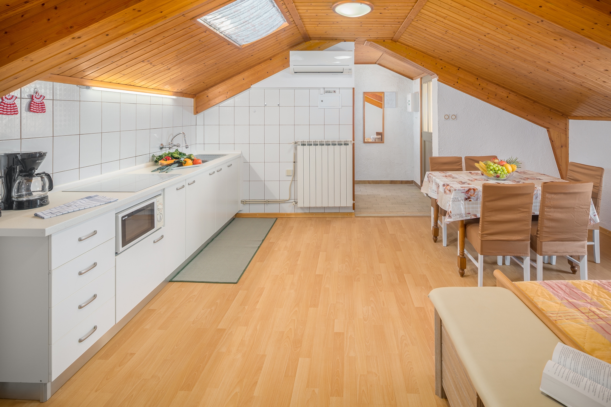 Apartment can accommodate 4 guests. Beds are situated in 1 sleeping rooms, but also in the living room, within 58m2. Guests can use a private terrace to enjoy the warm summer evenings. The apartment offers the sea view. This accommodation unit welcomes pets at an additional charge. INCLUDED IN THE PRICE: tourist tax, final cleaning, air-conditioning, central heating, parking, internet, hairdryer. OBLIGATORY ADDITIONAL COSTS: short stay fee (surcharge depending on a number of booked nights: 30% - 1, 20% - 2, 10% - 3). OPTIONAL ADDITIONAL COSTS: laundry (€3.00 washing), pets (€10.00 per night), additional bed (€10.00 per night). The availability of additional services for your chosen dates of stay, as well as their prices (if none are listed) must be checked ahead of time. Any additional services not shown in the price calculation are payable directly to the property owner and only if used by the visitor.