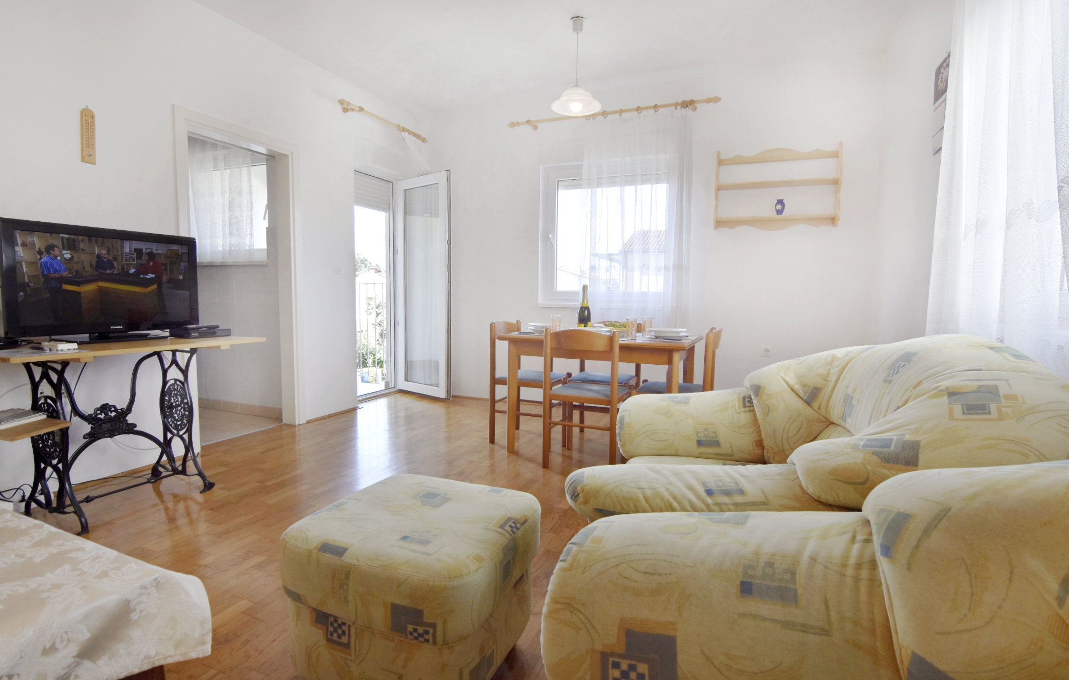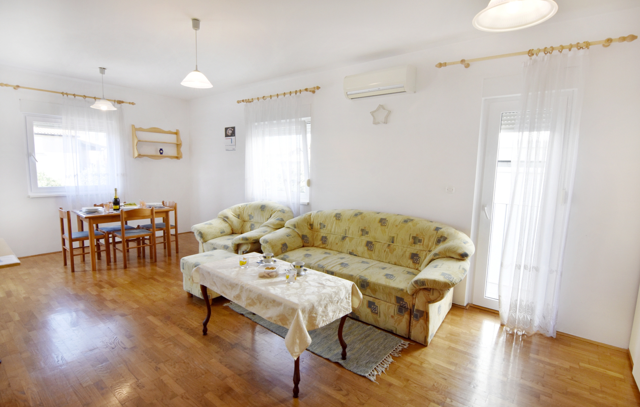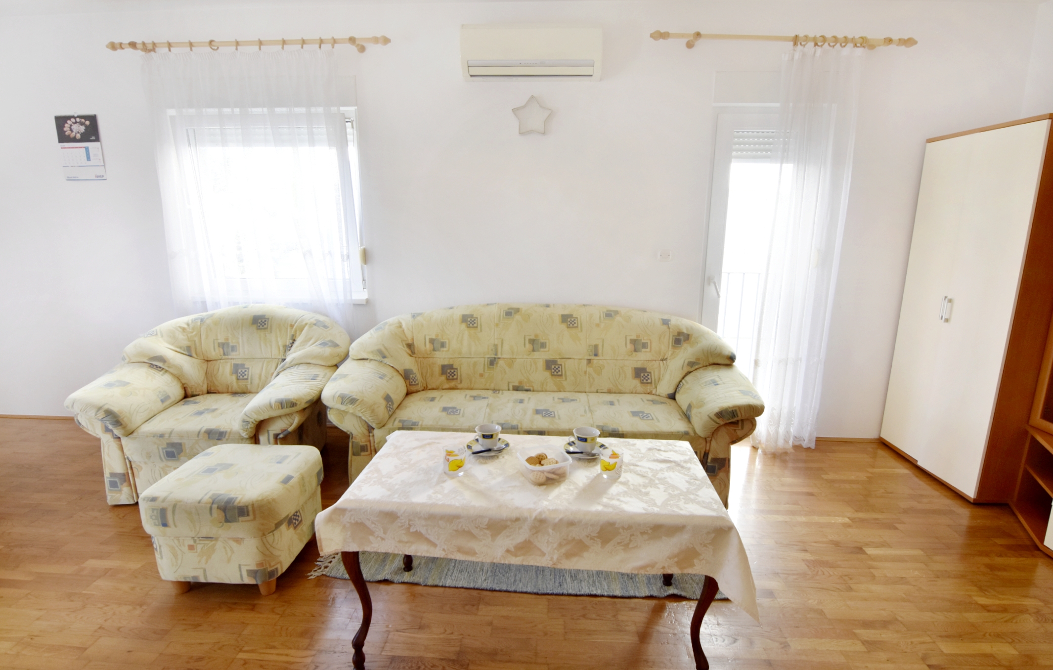Apartment can accommodate 4 guests. Beds are situated in 1 sleeping rooms, but also in the living room, within 43m2. Guests can use a private balcony to enjoy the warm summer evenings. INCLUDED IN THE PRICE: tourist tax, final cleaning, air-conditioning, internet, hairdryer. The availability of additional services for your chosen dates of stay, as well as their prices (if none are listed) must be checked ahead of time. Any additional services not shown in the price calculation are payable directly to the property owner and only if used by the visitor.