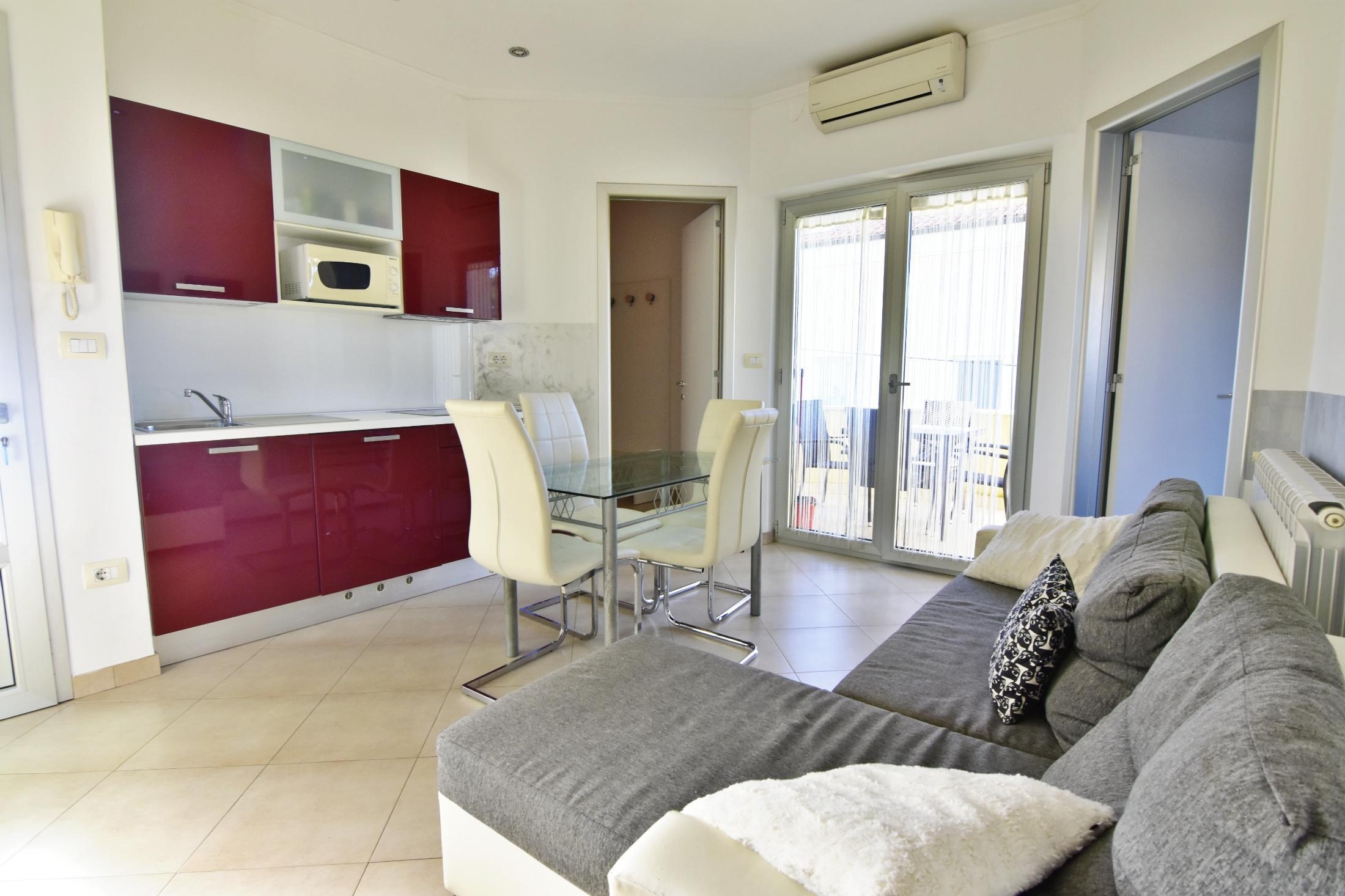 Apartment can accommodate 4 guests. Beds are situated in 2 sleeping rooms, within 43m2. Guests can use a private balcony to enjoy the warm summer evenings. INCLUDED IN THE PRICE: tourist tax, final cleaning, air-conditioning, parking, internet. The availability of additional services for your chosen dates of stay, as well as their prices (if none are listed) must be checked ahead of time. Any additional services not shown in the price calculation are payable directly to the property owner and only if used by the visitor.