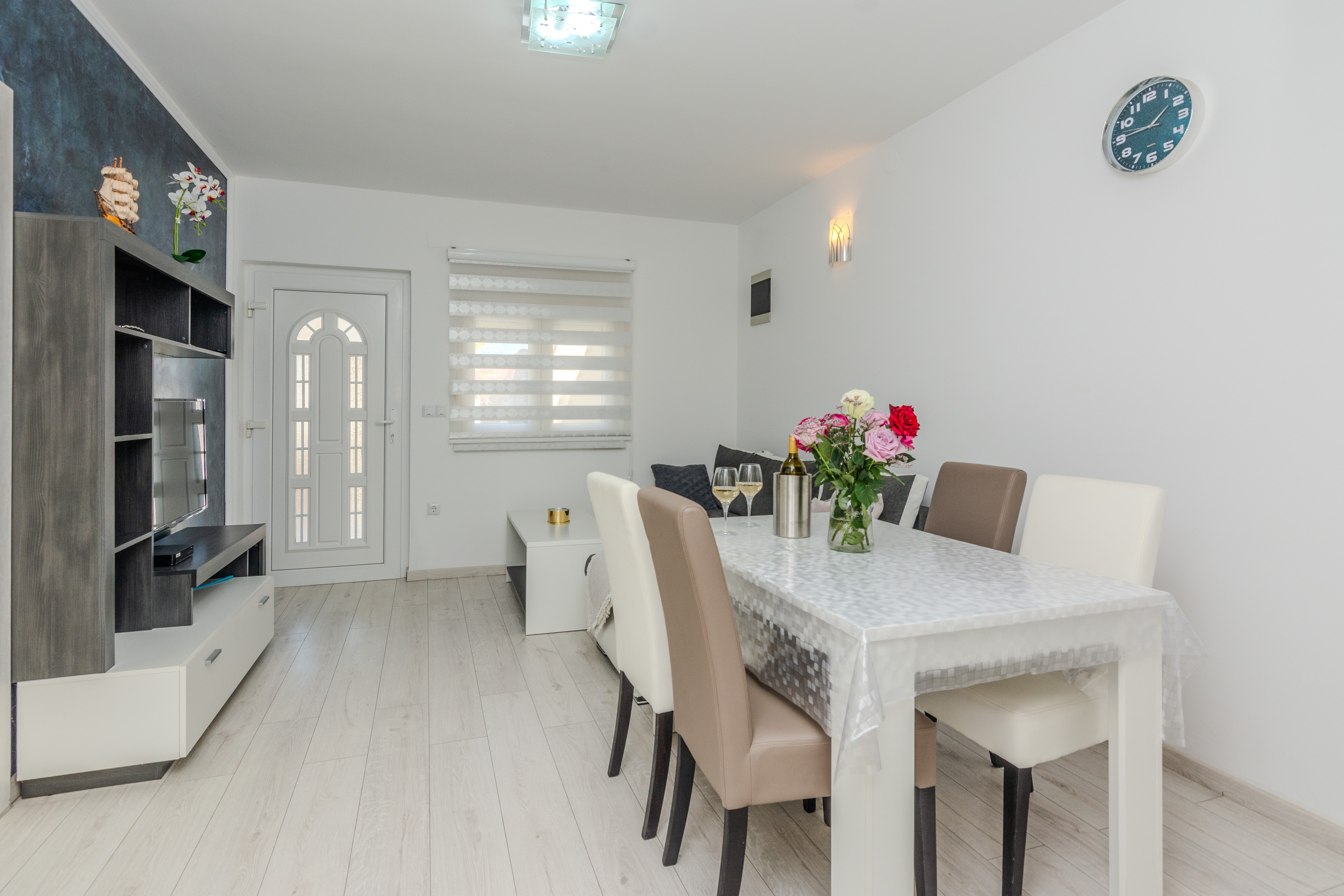 Apartment can accommodate 6 guests. Beds are situated in 2 sleeping rooms, but also in the living room, within 47m2. Guests can use a private terrace to enjoy the warm summer evenings. Food can be prepared using barbecue which is shared with other guests too. INCLUDED IN THE PRICE: tourist tax, final cleaning, air-conditioning, parking, internet, laundry, baby cot. OBLIGATORY ADDITIONAL COSTS: short stay fee (surcharge depending on a number of booked nights: 30% - 1, 20% - 2, 10% - 3). The availability of additional services for your chosen dates of stay, as well as their prices (if none are listed) must be checked ahead of time. Any additional services not shown in the price calculation are payable directly to the property owner and only if used by the visitor.