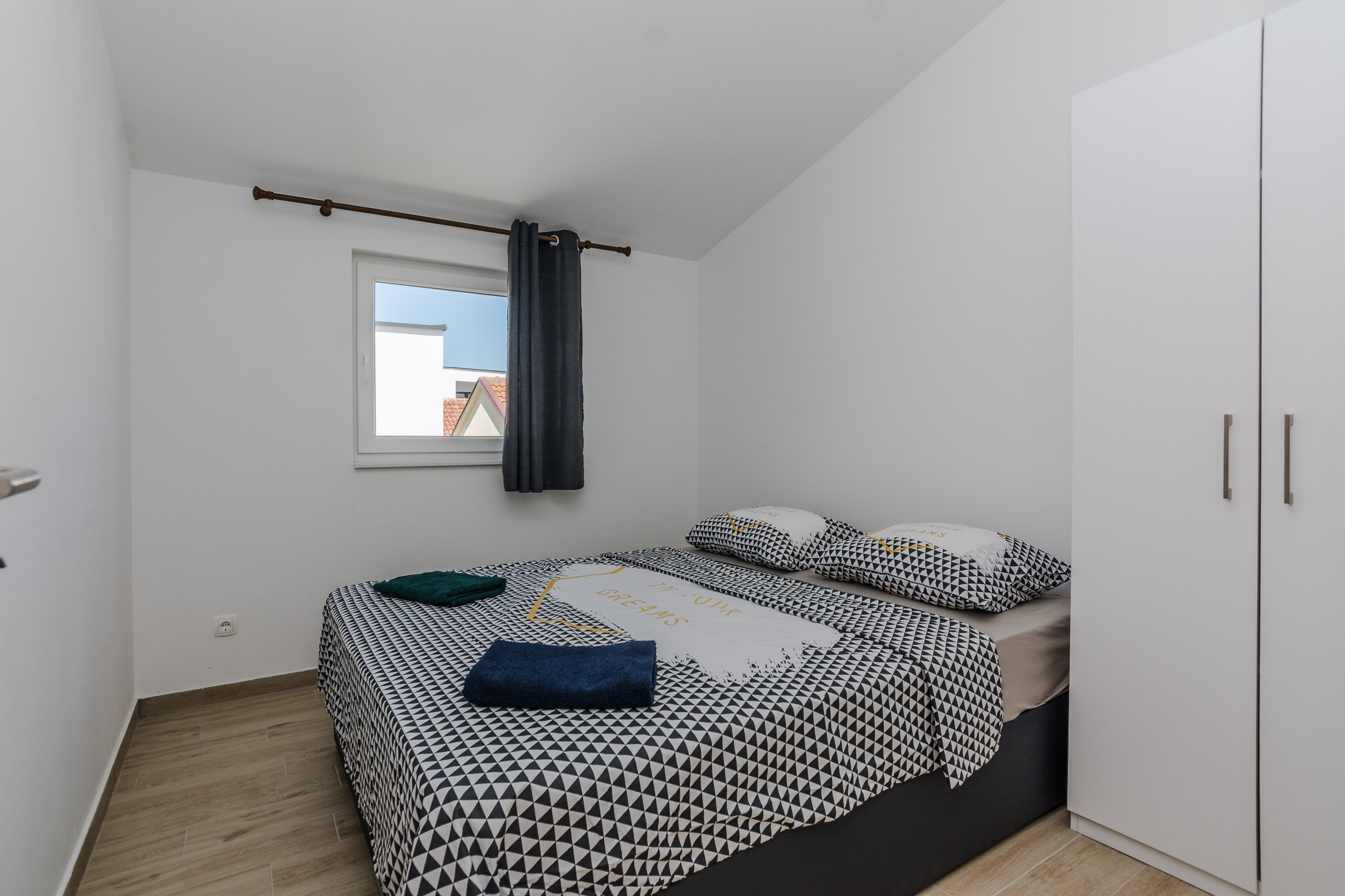 Apartment can accommodate 4 guests. Beds are situated in 2 sleeping rooms, within 35m2. Guests can use a private balcony to enjoy the warm summer evenings. Food can be prepared using barbecue which is shared with other guests too. INCLUDED IN THE PRICE: tourist tax, final cleaning, air-conditioning, parking, internet, laundry, baby cot, iron, ironing board, hairdryer. OBLIGATORY ADDITIONAL COSTS: short stay fee (surcharge depending on a number of booked nights: 30% - 1, 20% - 2, 10% - 3). The availability of additional services for your chosen dates of stay, as well as their prices (if none are listed) must be checked ahead of time. Any additional services not shown in the price calculation are payable directly to the property owner and only if used by the visitor.