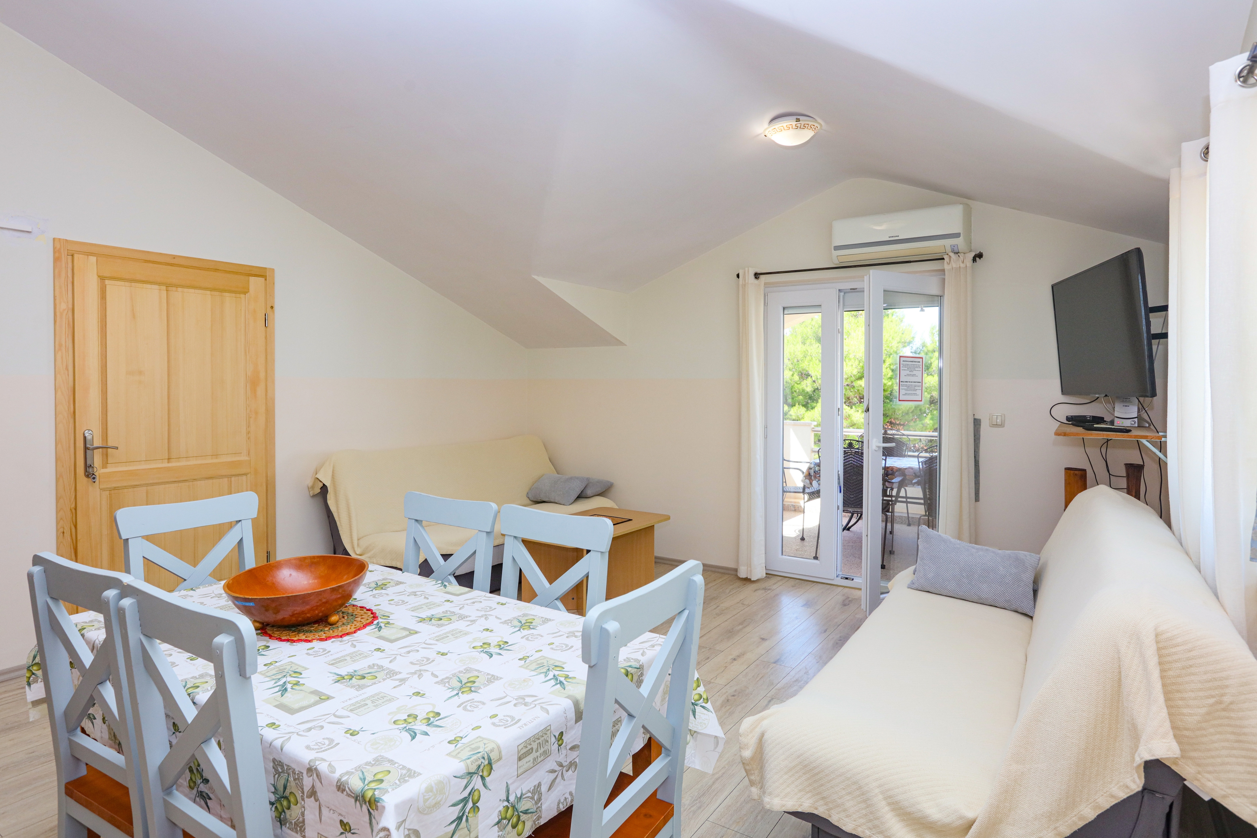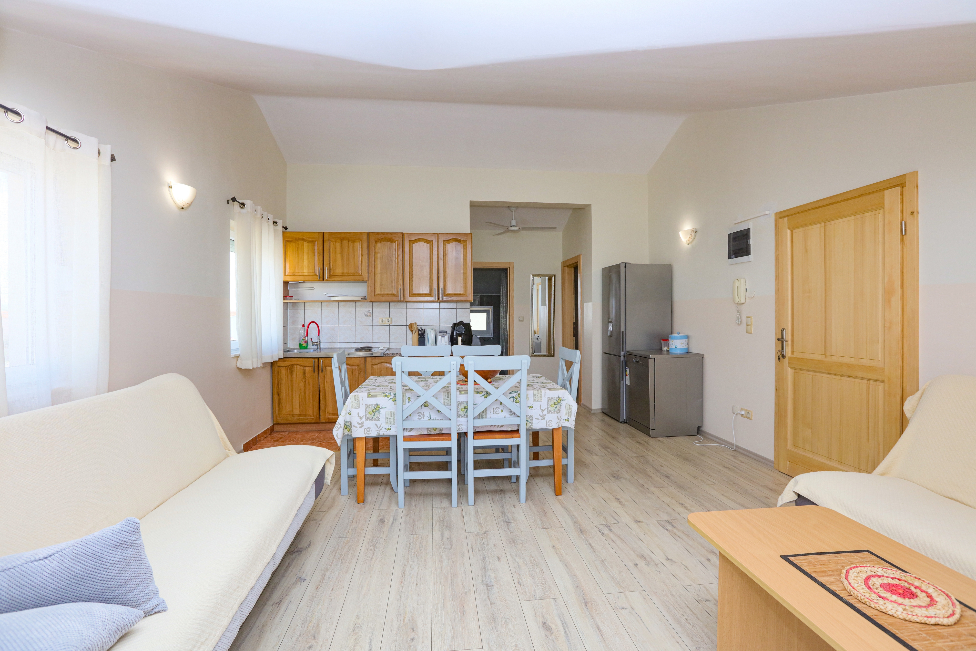 Apartment can accommodate 6 guests. Beds are situated in 2 sleeping rooms, but also in the living room, within 57m2. Guests can use a private balcony to enjoy the warm summer evenings. Food can be prepared using barbecue which is shared with other guests too. This accommodation unit welcomes pets at no additional costs. INCLUDED IN THE PRICE: tourist tax, final cleaning, air-conditioning, parking, internet, laundry, pets, baby cot, additional bed, hairdryer. The availability of additional services for your chosen dates of stay, as well as their prices (if none are listed) must be checked ahead of time. Any additional services not shown in the price calculation are payable directly to the property owner and only if used by the visitor. Discounts to the base price: free day 14=13 (for reservations of 14 or more days you get one free day for the stay until 31122026).