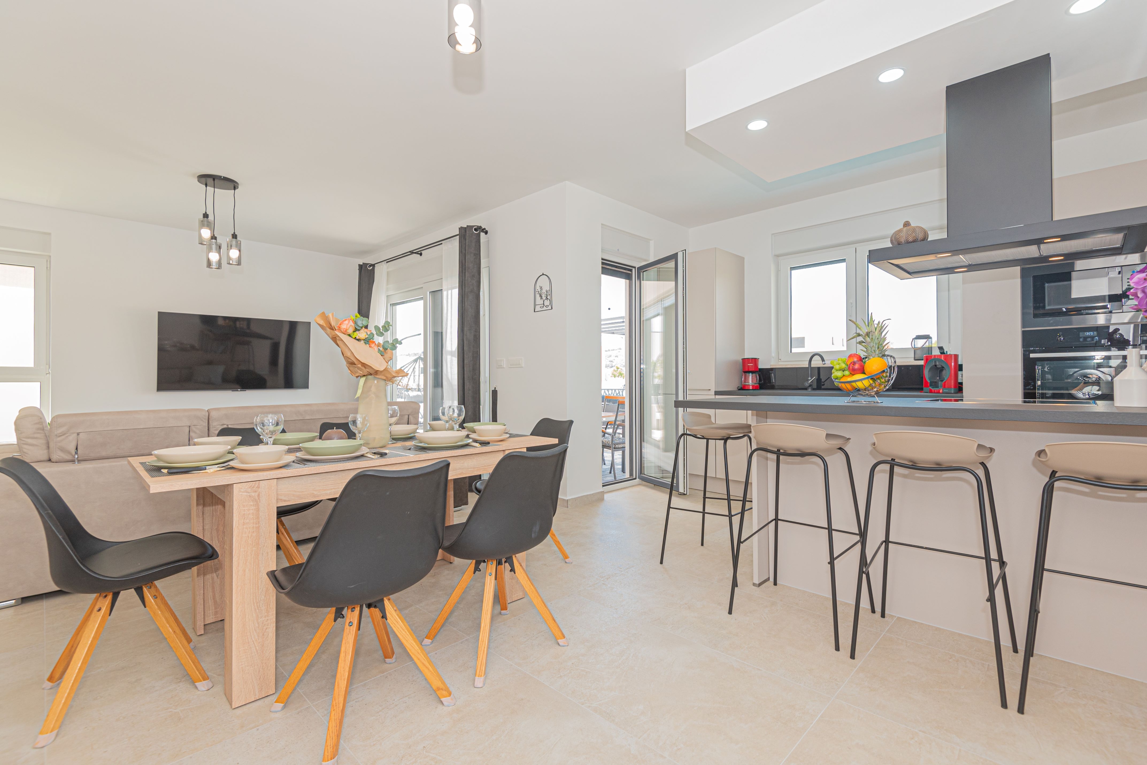 House can accommodate 6 guests. Beds are situated in 3 sleeping rooms, within 101m2. Guests can use a private terrace to enjoy the warm summer evenings. For full enjoyment and relaxation there is a private barbecue for this accommodation guests only. During stay, there is a private pool for relaxation and pleasure. INCLUDED IN THE PRICE: tourist tax, final cleaning, air-conditioning, pool, parking, internet, baby cot, iron, ironing board, hairdryer. OBLIGATORY ADDITIONAL COSTS: short stay fee (surcharge depending on a number of booked nights: 30% - 1, 20% - 2, 10% - 3). OPTIONAL ADDITIONAL COSTS: boat (€200.00 per night). The availability of additional services for your chosen dates of stay, as well as their prices (if none are listed) must be checked ahead of time. Any additional services not shown in the price calculation are payable directly to the property owner and only if used by the visitor. Discounts to the base price: free day 14=13 (for reservations of 14 or more days you get one free day for the stay until 31122026).