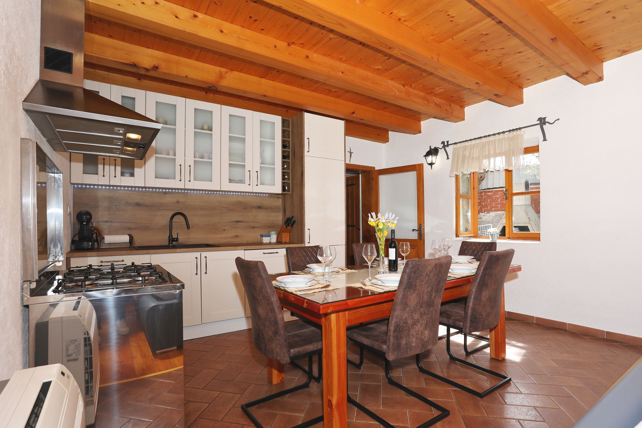 House can accommodate 5 guests. Beds are situated in 2 sleeping rooms, but also in the living room, within 70m2. Guests can use a private terrace to enjoy the warm summer evenings. For full enjoyment and relaxation there is a private barbecue for this accommodation guests only. This accommodation unit welcomes pets at an additional charge. INCLUDED IN THE PRICE: tourist tax, final cleaning, air-conditioning, parking, internet, iron, hairdryer. OPTIONAL ADDITIONAL COSTS: pets (€5.00 per night). The availability of additional services for your chosen dates of stay, as well as their prices (if none are listed) must be checked ahead of time. Any additional services not shown in the price calculation are payable directly to the property owner and only if used by the visitor. Discounts to the base price: free day 21=19 (for reservations of 21 or more days you get 2 free days for the stay until 31122026).
