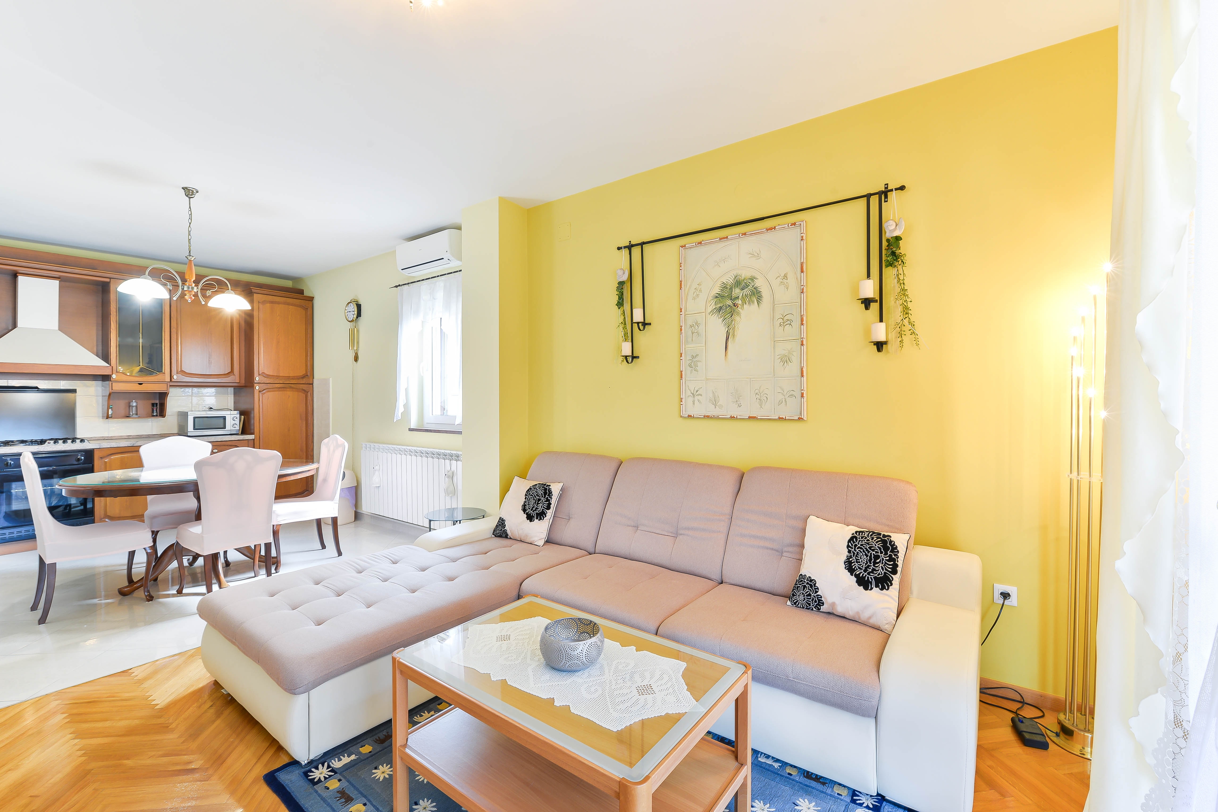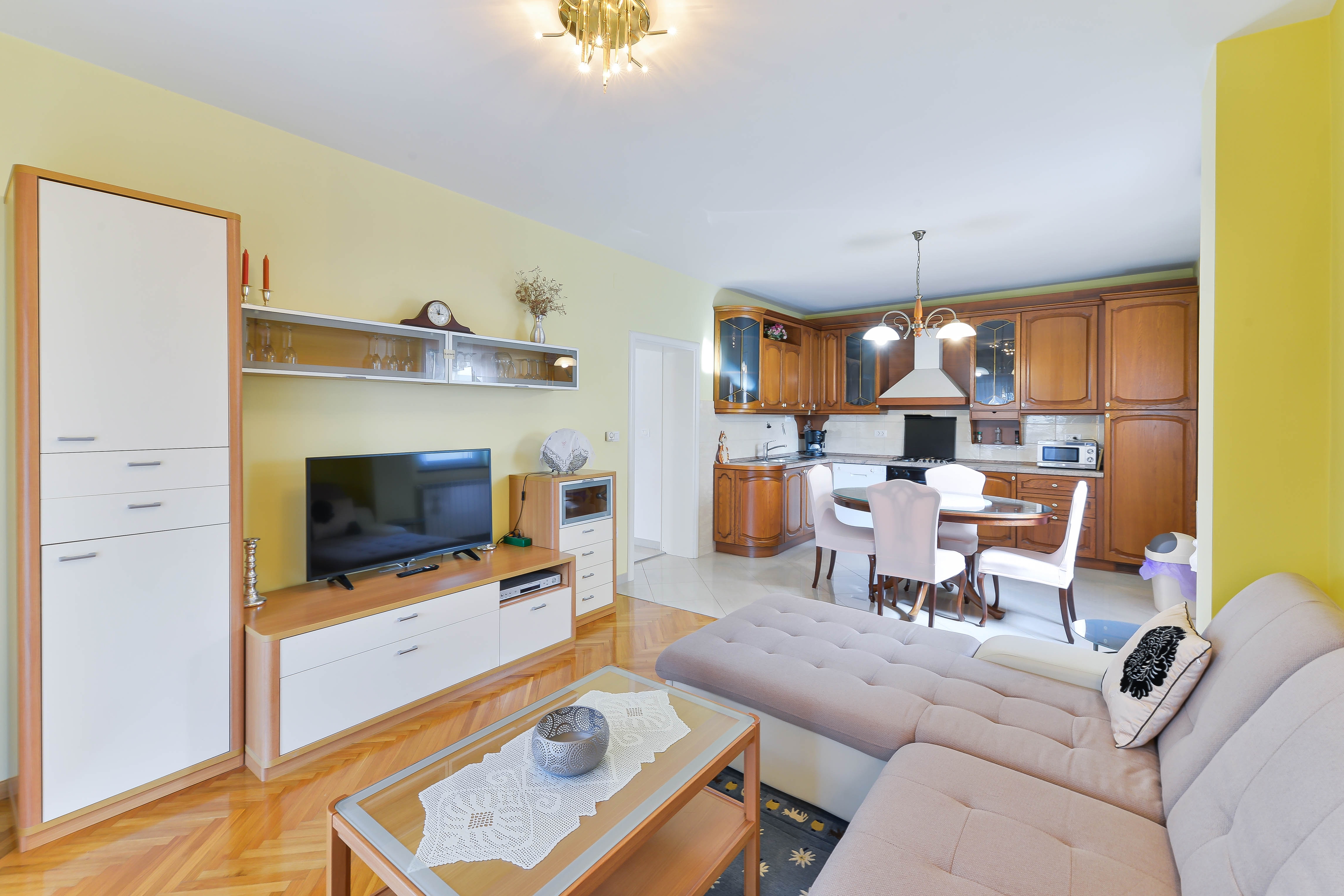 Apartment can accommodate 3 guests. Beds are situated in 2 sleeping rooms, within 63m2. Guests can use a private terrace to enjoy the warm summer evenings. Food can be prepared using barbecue which is shared with other guests too. Shared pool is on disposal during stay. For the booked accommodation unit the deposit is paid directly to the owner upon check-in (deposit amount is displayed on the website) INCLUDED IN THE PRICE: tourist tax, final cleaning, air-conditioning, pool, parking, internet, baby cot, iron, ironing board, hairdryer, portable barbecue. OBLIGATORY ADDITIONAL COSTS: deposit (€100.00 one-time payment), short stay fee (surcharge depending on a number of booked nights: 30% - 1, 20% - 2, 10% - 3). OPTIONAL ADDITIONAL COSTS: laundry (€5.00 washing). The availability of additional services for your chosen dates of stay, as well as their prices (if none are listed) must be checked ahead of time. Any additional services not shown in the price calculation are payable directly to the property owner and only if used by the visitor.
