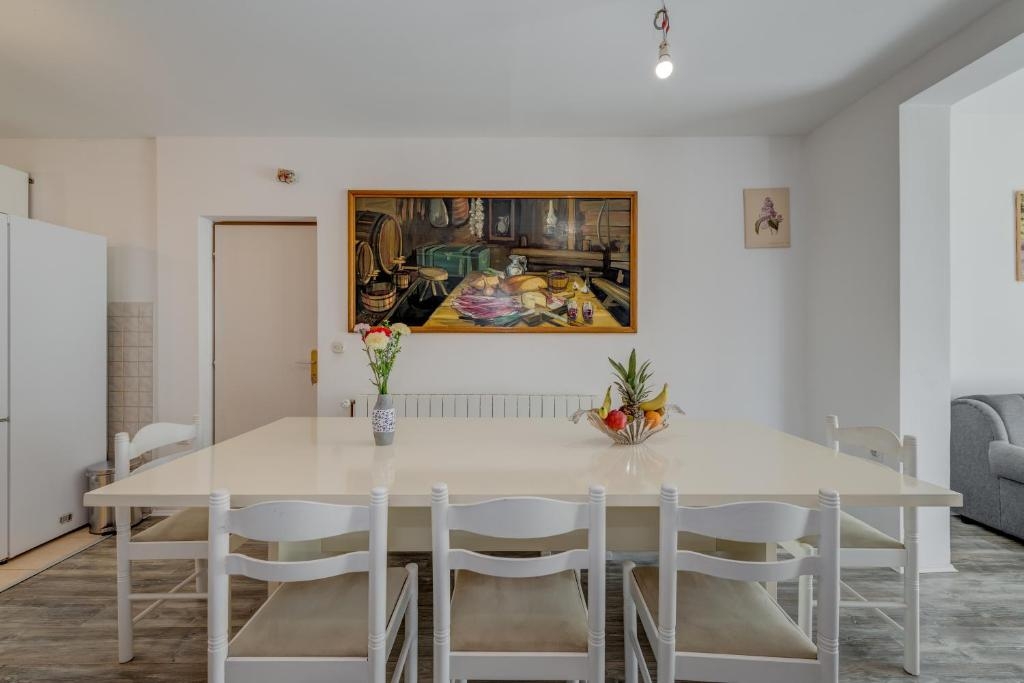 House can accommodate 10 guests. Beds are situated in 5 sleeping rooms, within 126m2. Guests can use a private terrace to enjoy the warm summer evenings. For full enjoyment and relaxation there is a private barbecue for this accommodation guests only. During stay, there is a private pool for relaxation and pleasure. INCLUDED IN THE PRICE: tourist tax, final cleaning, air-conditioning, central heating, pool, parking, garage, internet, baby cot, iron, ironing board, hairdryer, sunchairs. OBLIGATORY ADDITIONAL COSTS: short stay fee (surcharge depending on a number of booked nights: 30% - 1, 20% - 2, 10% - 3). The availability of additional services for your chosen dates of stay, as well as their prices (if none are listed) must be checked ahead of time. Any additional services not shown in the price calculation are payable directly to the property owner and only if used by the visitor.